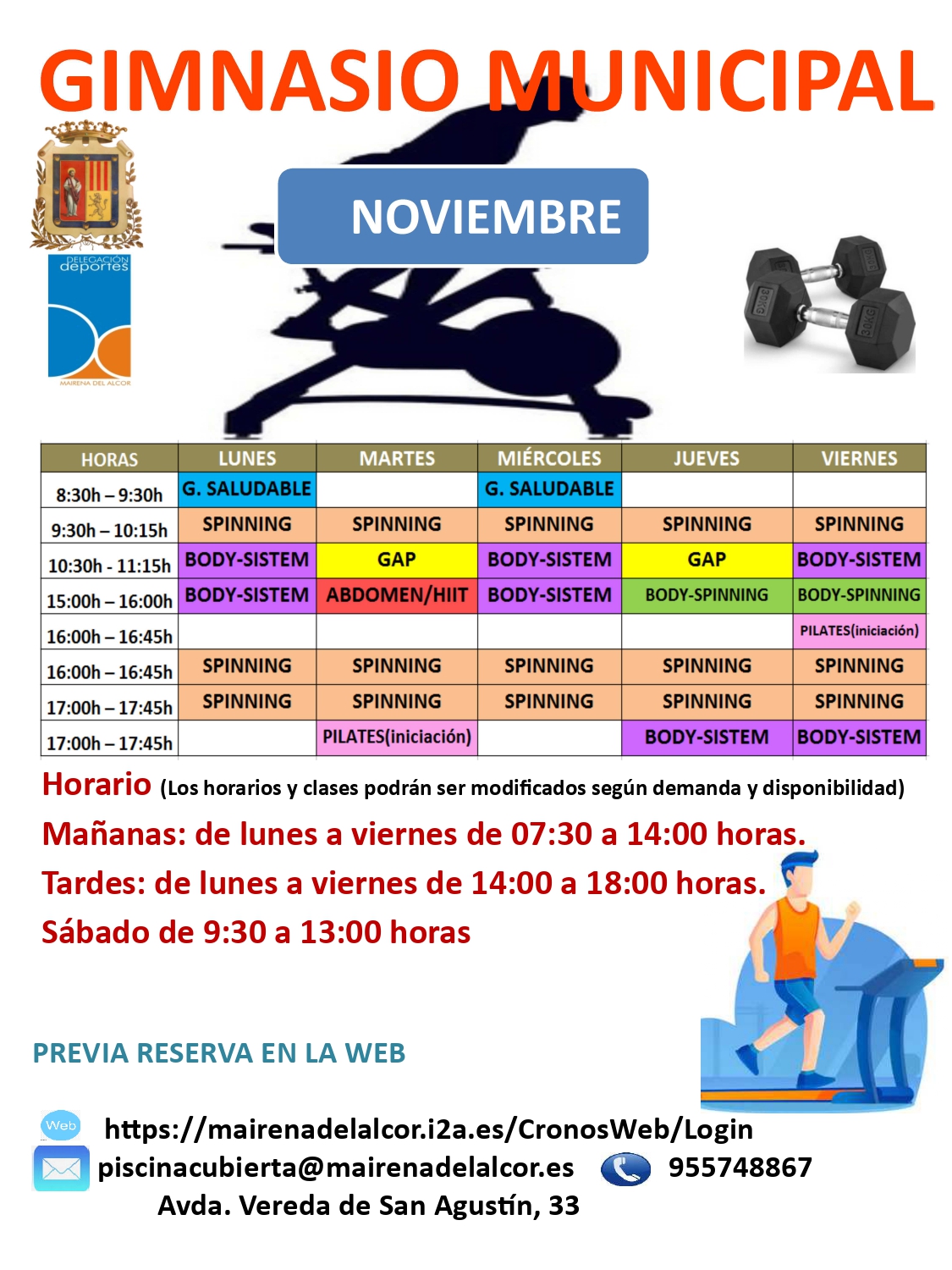 La Delegación de Deportes informa que debido a las nuevas medidas anunciadas para frenar los contagios por COVID-19, se actualizan los horarios del gimnasio y las clases colectivas a partir del martes 10 de noviembre.