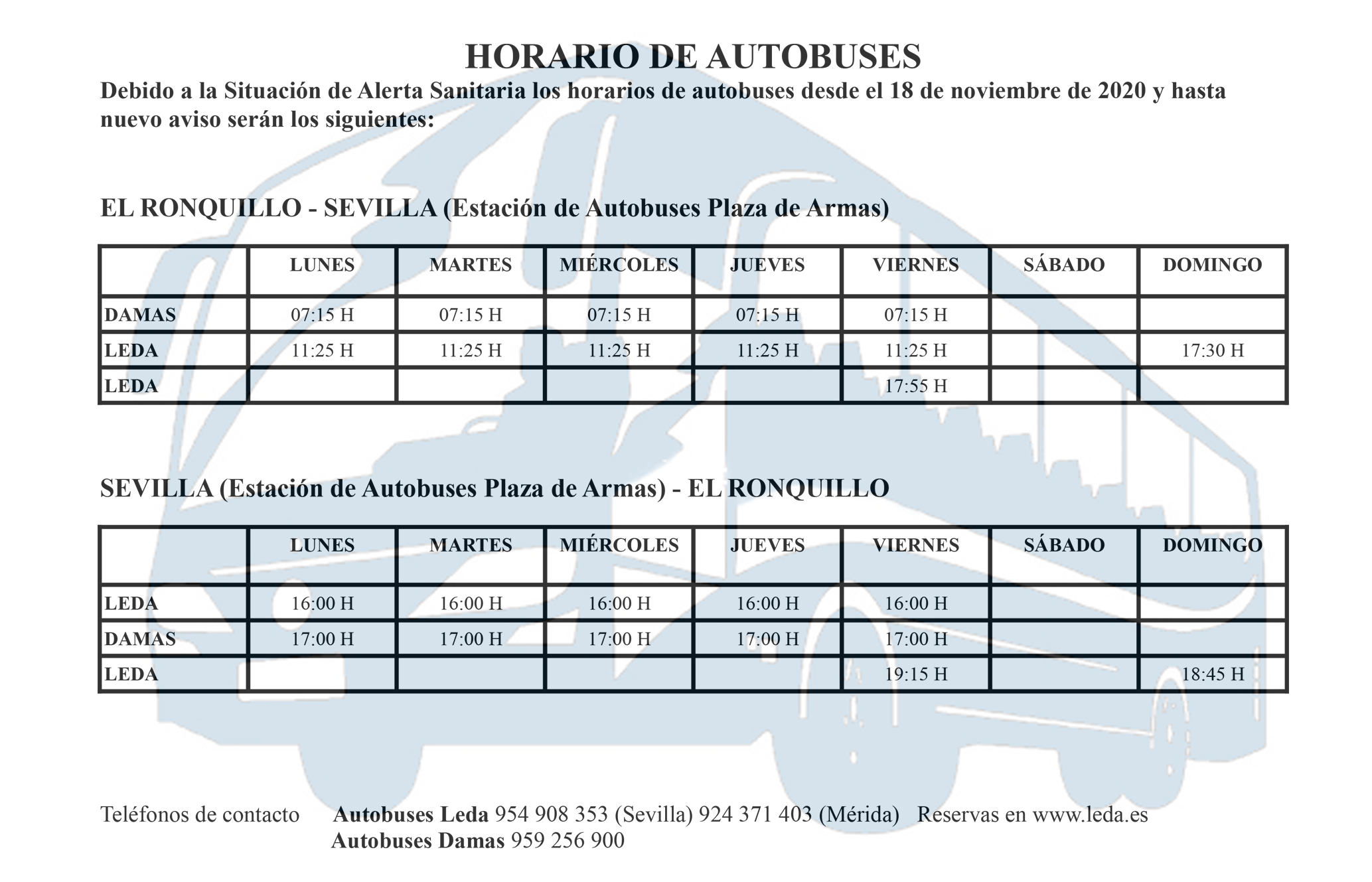 La empresa de Autobuses LEDA ha realizado un nuevo cambios en los horarios de los autobuses debido a la situación de Estado de Alarma en la que nos encontramos.