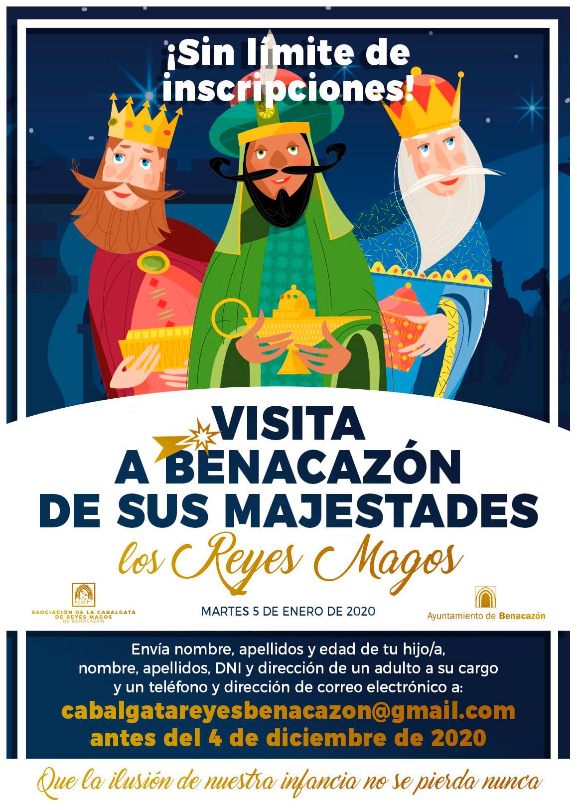 Desde el Ayuntamiento de Benacazón te informamos que, con el objetivo de que el tradicional y mágico día de los Reyes Magos siga simbolizando la felicidad de la infancia benacazonera, en coordinación con la Asociación de la Cabalgata de Reyes Magos, hemos organizado un acto que tendrá lugar el 5 de enero de 2021. El acto alternativo a la Cabalgata que, en esta edición, se ha visto suspendida por la pandemia de la Covid-19, ha tenido una gran acogida entre la población.