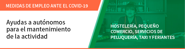 Enlace con la información de las ayudas para autónomos de la hostelería, pequeño comercio, servicios de peluquería, transporte por taxi y feriantes de la Junta de Andalucía.