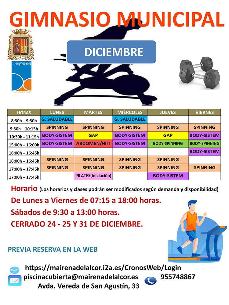 La Delegación de Deportes informa de los los turnos y los horarios de las clases para el mes de diciembre.