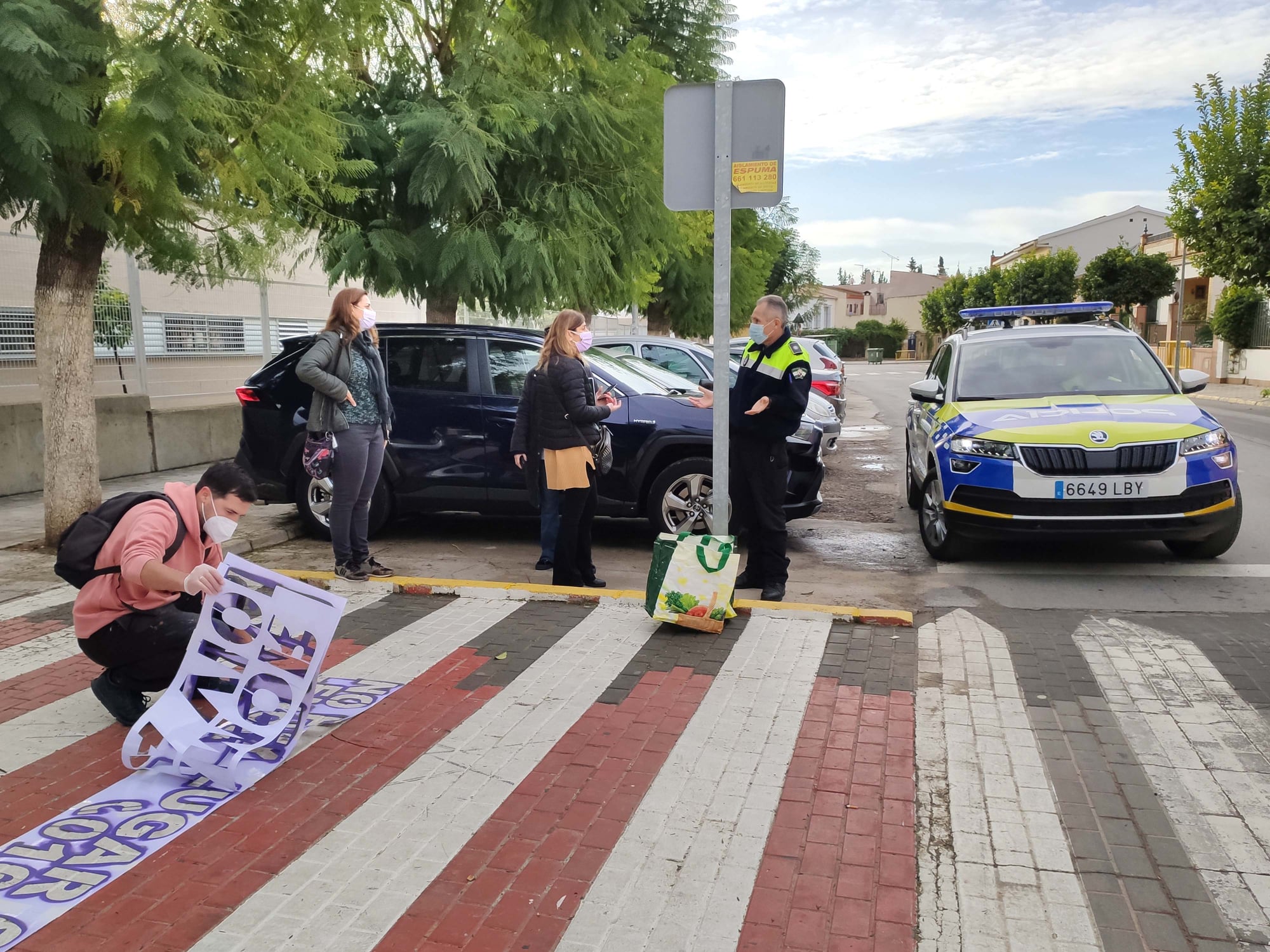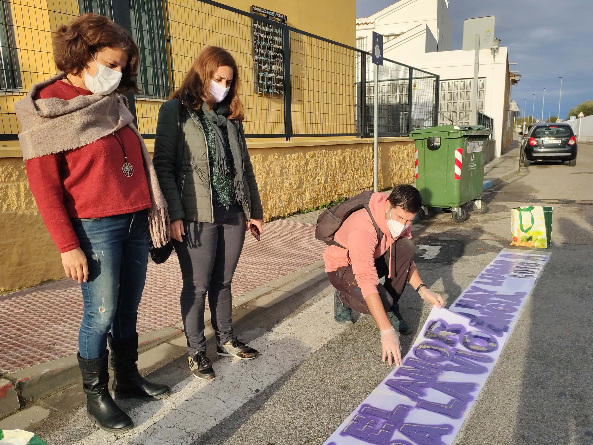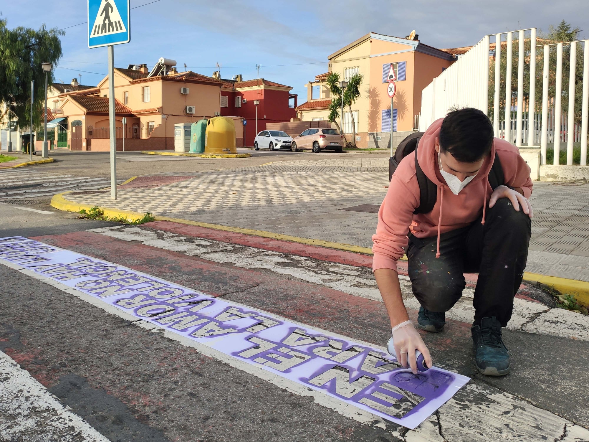 Esta actividad, titulada "Que no pasen de ti" se ha desarrollado durante la mañana de hoy 27 de noviembre y ha consistido en la decoración de los pasos de peatones más cercanos a los centros educativos locales, ya que congregan a mayor cantidad de vecinos/as. Los mensajes que ilustran estos 5 pasos de peatones fueron elegidos durante los días previos por el alumnado del IES Virgen del Rosario e incluyen además una referencia al 016, el teléfono de ayuda a las mujeres víctimas de violencia machista.