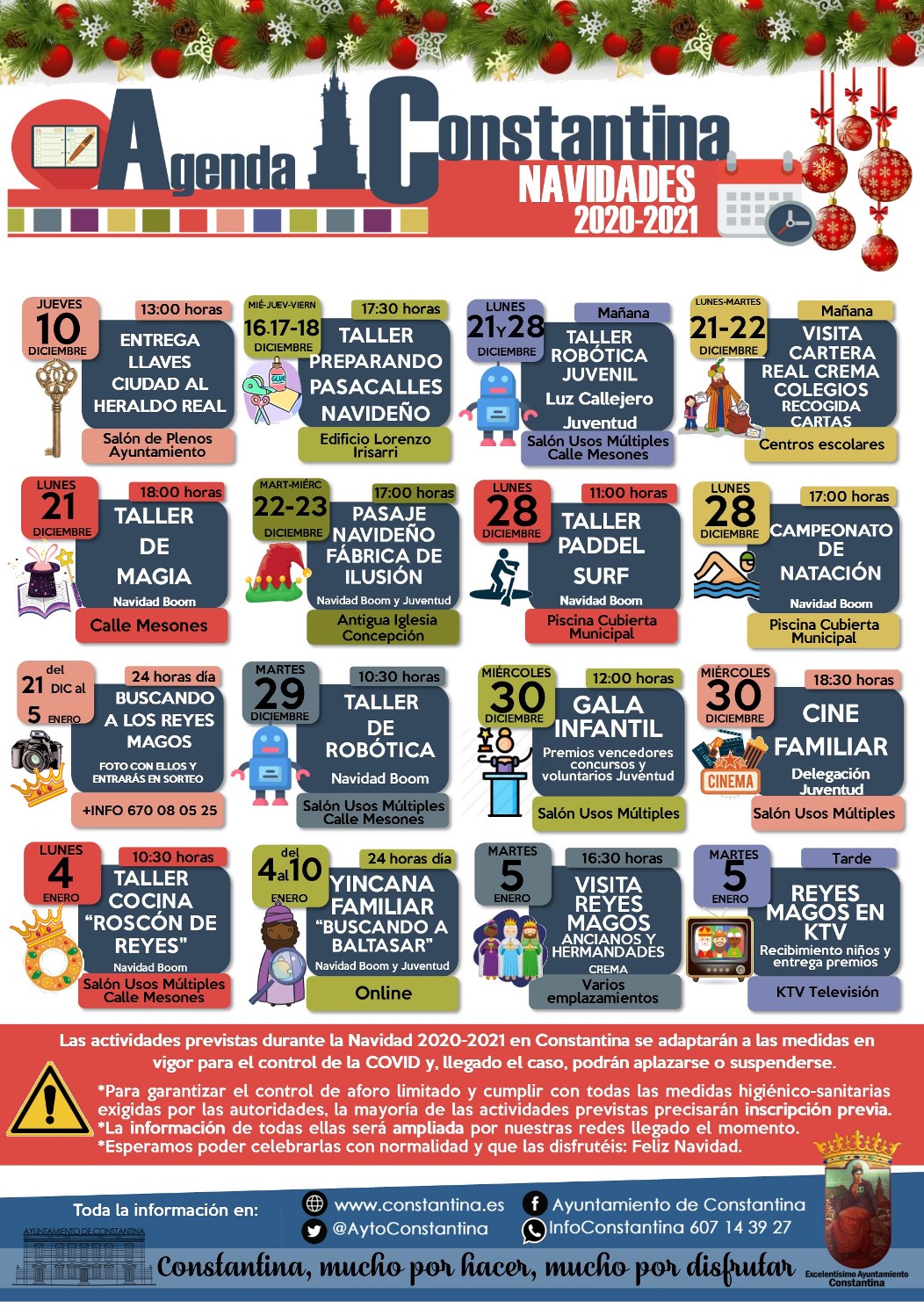 Os traemos las actividades previstas durante la Navidad 2020-2021 en Constantina que se adaptarán a las medidas en vigor para el control de la COVID y, llegado el caso, podrán aplazarse o suspenderse.