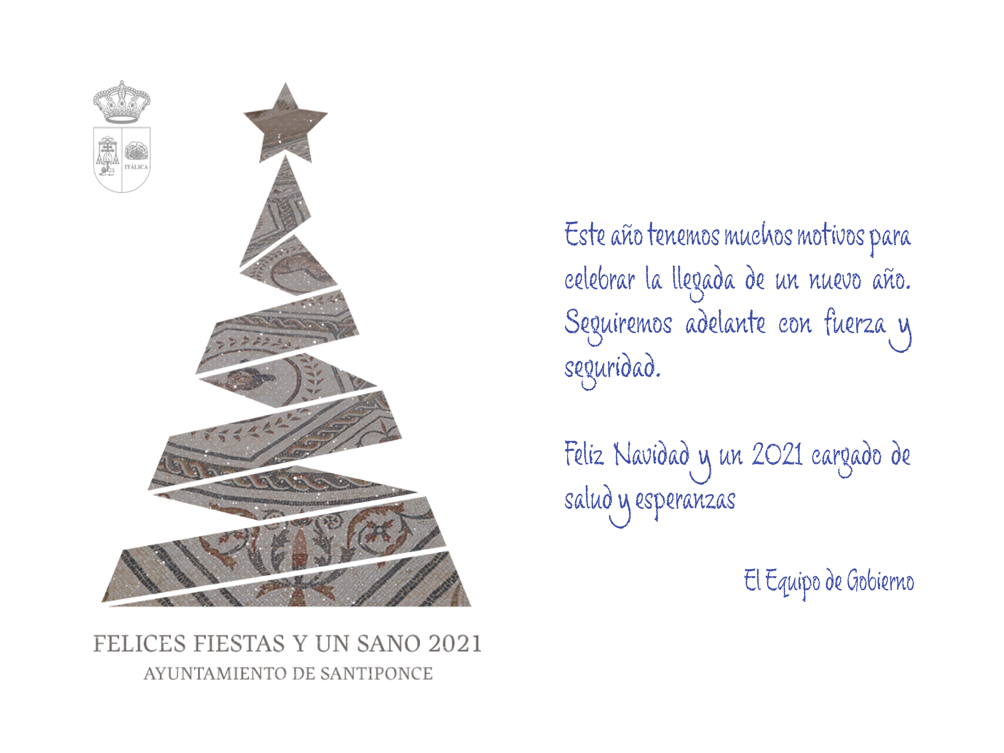 El Equipo de Gobierno del Ayuntamiento de Santiponce les desea unas Felices Fiestas y un 2021 cargado de esperanza para todos y todas.
