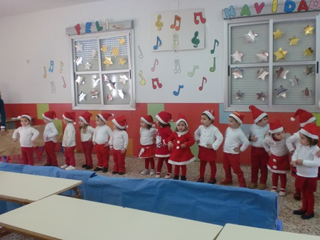 El pasado martes tuvo lugar la Fiesta de Navidad en la E.I. La Cometa. Los pequeños vestidos de rojo y blanco, colores típicos de las fiestas navideñas bailaron villancicos para disfrute de sus familiares.