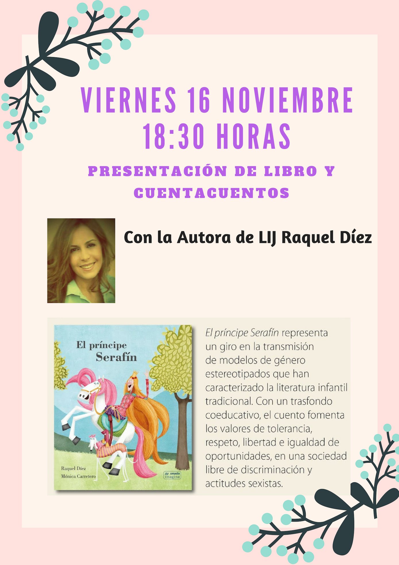{cartel Raquel} Imagen Ubicación Categoría noticia Educación Mostrar en el carrusel de la sección No Fecha Jue, 15/11/2018 - 08:33 Más información http://www.lantejuela.org/es/actualidad/noticias/Presentacion-de-libro-El-princ…