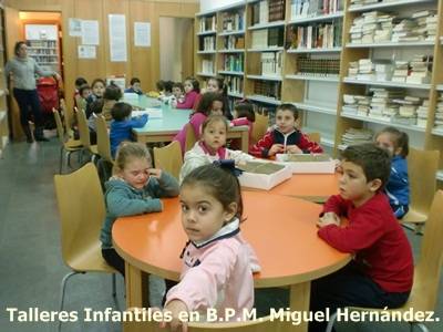 En la Biblioteca Pública Municipal Miguel Hernández, dependiente del Área de Cultura, durante los días festivos se han realizado Talleres Infantiles destinados a niñ@s entre 3 y 5 años. Las actividades propuestas por Rocío Castilla, encargada de la biblioteca, han sido la lectura del cuento "La navidad de Snowy" del autor Alberto Pérez Gómez. El cuento entusiasmó a los pequeños con su mensaje y la forma de narrar la historia. Y, posteriormente, se adornaron el árbol de navidad y el paisaje, confeccionados en los días previos, con figuras pintadas por los pequeños. Al final, se llevaron a casa para adornar su árbol de navidad un angelito y un papa noel.