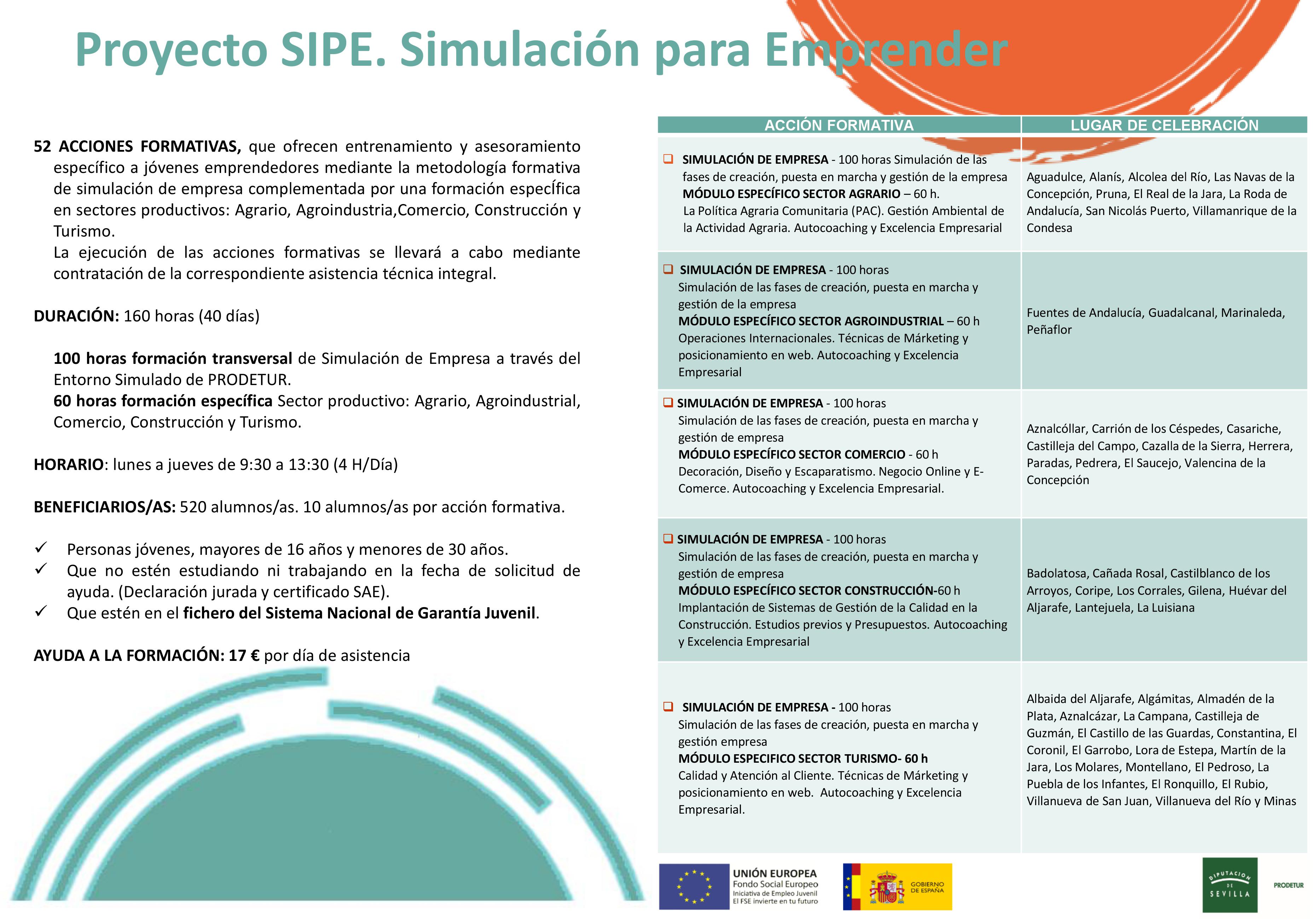 El Ayuntamiento de Lantejuela informa que próximamente tendrá lugar en nuestro municipio el Proyecto SIPE, que pone en marcha la Diputación de Sevilla a través de Prodetur.