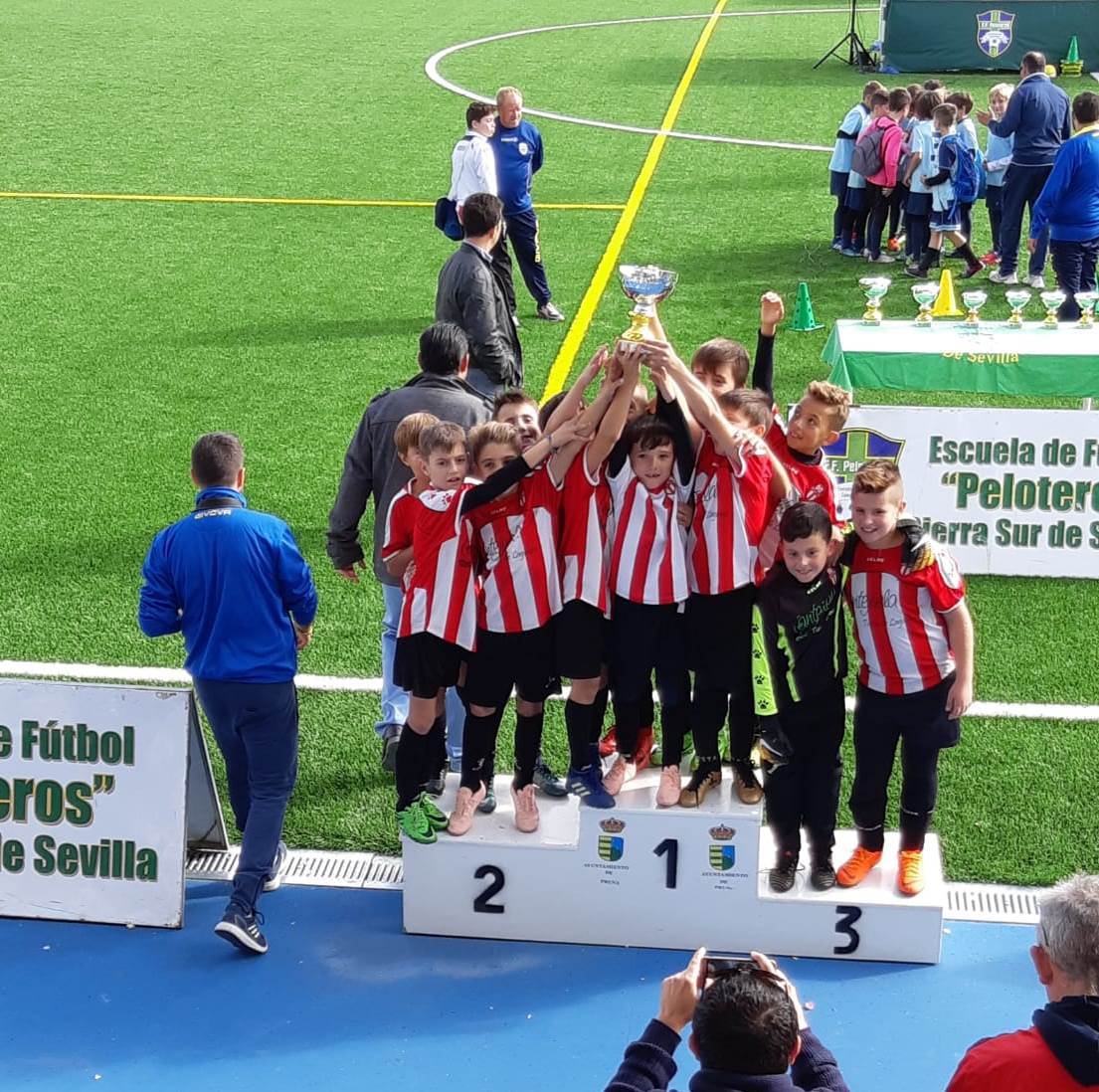 ----- Equipo benjamín de la E.F LantejuelaCampeones en su categoría el sábado pasado en Prun a.