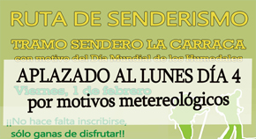 Imagen Ubicación Categoría noticia Medio Ambiente Mostrar en el carrusel de la sección No Fecha Jue, 31/01/2019 - 09:40 Más información http://www.lantejuela.org/es/actualidad/noticias/Aplazada-Ruta-de-Senderismo.-D…