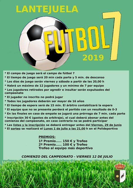 Imagen Ubicación Categoría noticia Deporte Mostrar en el carrusel de la sección No Fecha Mar, 11/06/2019 - 13:26 Más información http://www.lantejuela.org/es/actualidad/noticias/Campeonato-Futbol-7-2019/