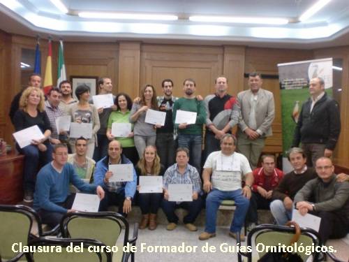 El pasado viernes tuvolugar la clausura del curso de Formación de Guías en el Salón de Plenos del Ayuntamiento de Lantejuela a cargo de Juan Lora Martín, Alcalde del municipio, Antonio Páez Jiménez, concejal-delegado del Área de Medio Ambiente y José Eugenio Gutiérrez Ureña, coordinador del Proyecto Life en SEO/BirdLife. En este mismo acto se hizo entrega al alumnado de los títulos acreditativos de la formación impartida.