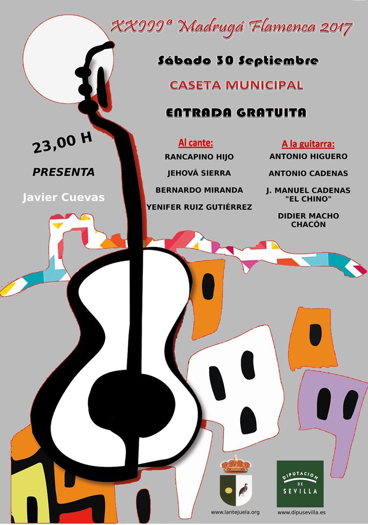 Imagen Ubicación Categoría noticia Cultura Mostrar en el carrusel de la sección No Fecha Lun, 11/09/2017 - 14:08 Más información http://www.lantejuela.org/es/actualidad/noticias/XXIII-Madruga-Flamenca-2017-00…