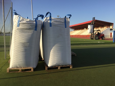 En estos días, en el campo de césped Juan José Fuentes Rodríguez se lleva a cabo la actuación de compactación y recebado con coco. Con el paso del tiempo, el relleno del campo de fútbol tiende a compactarse, ocupando menos espacio y volviendo el terreno de juego más duro. Es por este motivo que el Área de Deportes del Ayuntamiento de Lantejuela ha puesto en marcha esta actuación, que tiene dos procesos distintos. En el primer lugar se ha realizado una descompactación del campo, lo que conseguirá sacar a flote el relleno compactado a fin de que el campo vuelva a tener las fibras rectas ylevantadas. Y hoy se ha procedido al recebado que consiste en añadir al campo una cierta cantidad de relleno de coco. De esta manera, se consigue alargar la vida del campo de fútbol.
