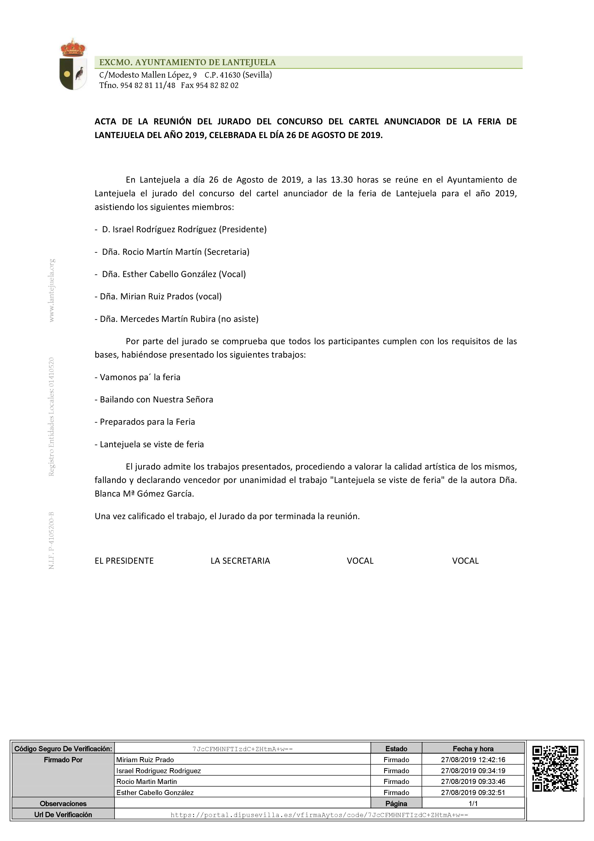 {0001 (1)} Imagen Ubicación Categoría noticia Festejos Mostrar en el carrusel de la sección No Fecha Mié, 28/08/2019 - 09:35 Más información http://www.lantejuela.org/es/actualidad/noticias/Acta-informativa-sobre-el-Conc…