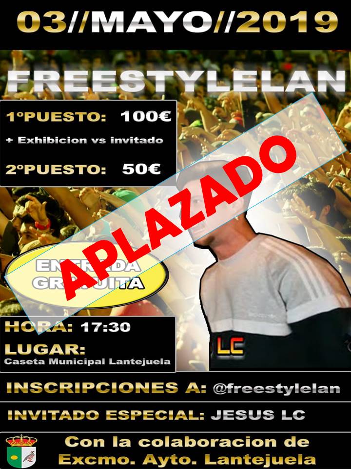 Imagen Ubicación Categoría noticia Deporte Mostrar en el carrusel de la sección No Fecha Jue, 02/05/2019 - 11:40 Más información http://www.lantejuela.org/es/actualidad/noticias/APLAZADO-FreestyleLan/