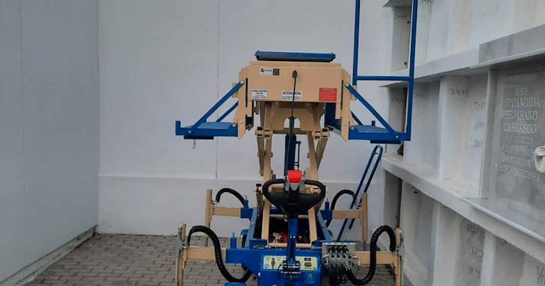 La función de este nuevo mecanismo, que ya se encuentra en funcionamiento en la localidad, es elevar el féretro a la altura en la que se encuentra el nicho para facilitar su introducción en la fosa, deslizándolo además hacia el interior para permitir su cierre.