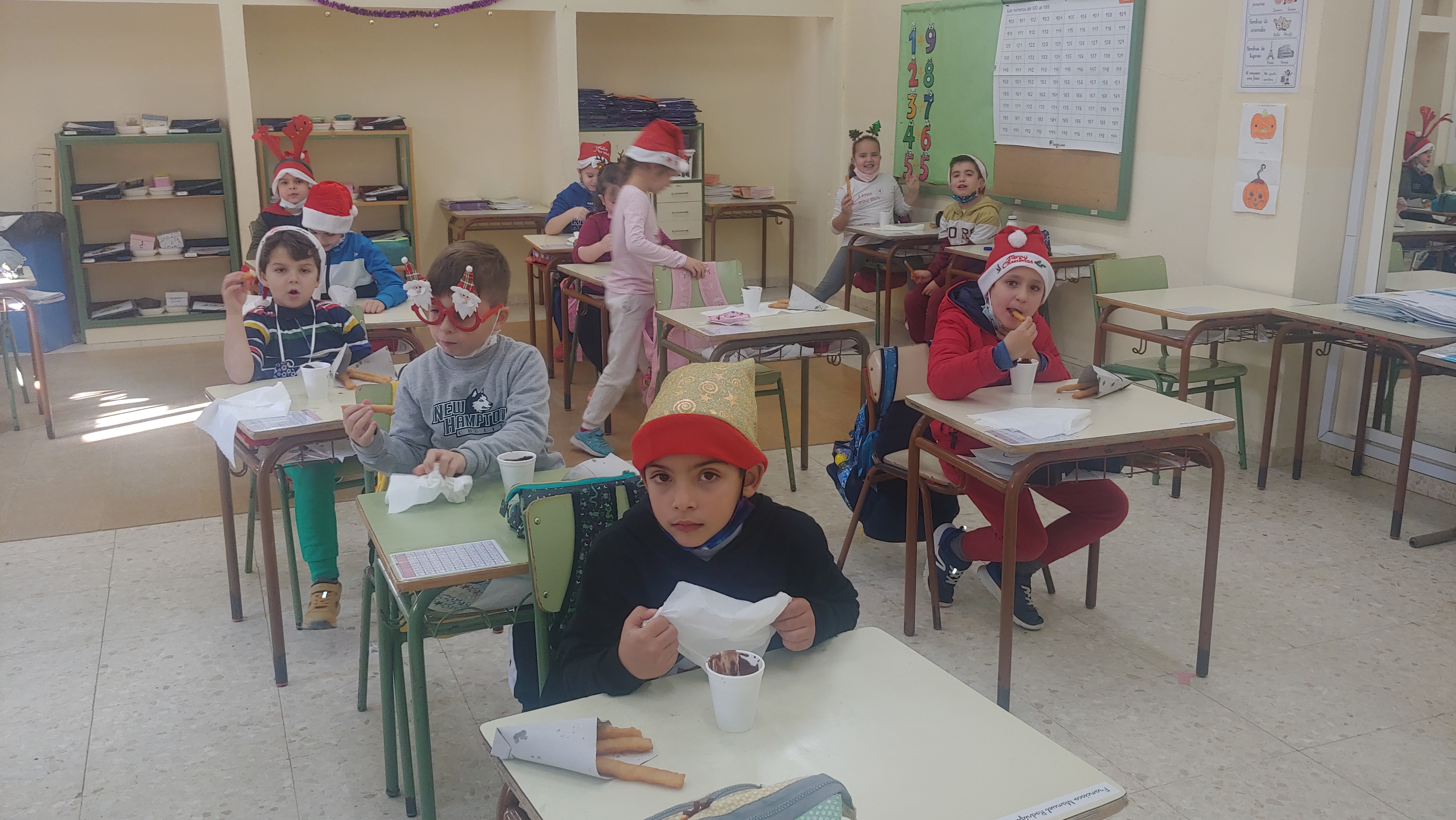 Ayer los escolares disfrutaban del tradicional desayuno de chocolate con churros cortesía del Ayuntamiento de Cañada Rosal.