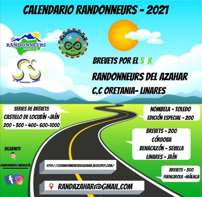 Si deseas conocer detalladamente el calendario de "Brevets por el Sur 2021", puedes acceder a los siguientes enlaces http://ccrandonneursdelazahar.blogspot.com/ y http://super-randonnees-andalucia.blogspot.com/
