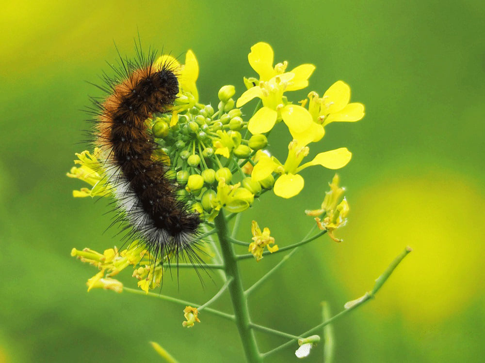 Esta especie de insecto, también conocida como "Oruga Peluda" (Ocnogyna baetica), crea densas telarañas encima de las hierbas recubriendo a las colonias para protegerse mientras se alimenta de las plantas. Cuando alcanzan un mayor tamaño se desplazan fuera de ella en busca de más alimento, llegando a ocupar calles y parques o incluso viviendas.