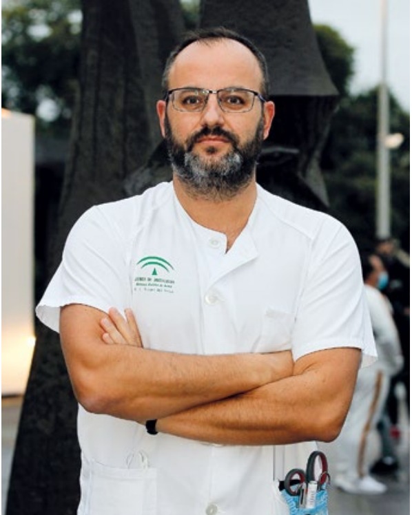José Ángel Morales es de Mairena del Alcor, enfermero en el hospital Virgen de Valme, y ha impulsado y coordinado, junto a Pilar Sánchez, una guía de procedimientos y cuidados Covid-19 destinada a facilitar la adaptación de las áreas de hospitalización en unidades covid cuando determinados momentos de la pandemia lo hacen necesario. Un instrumento elaborado por enfermeros y auxiliares de enfermería de la sexta planta derecha del Hospital Universitario de Valme de Sevilla.