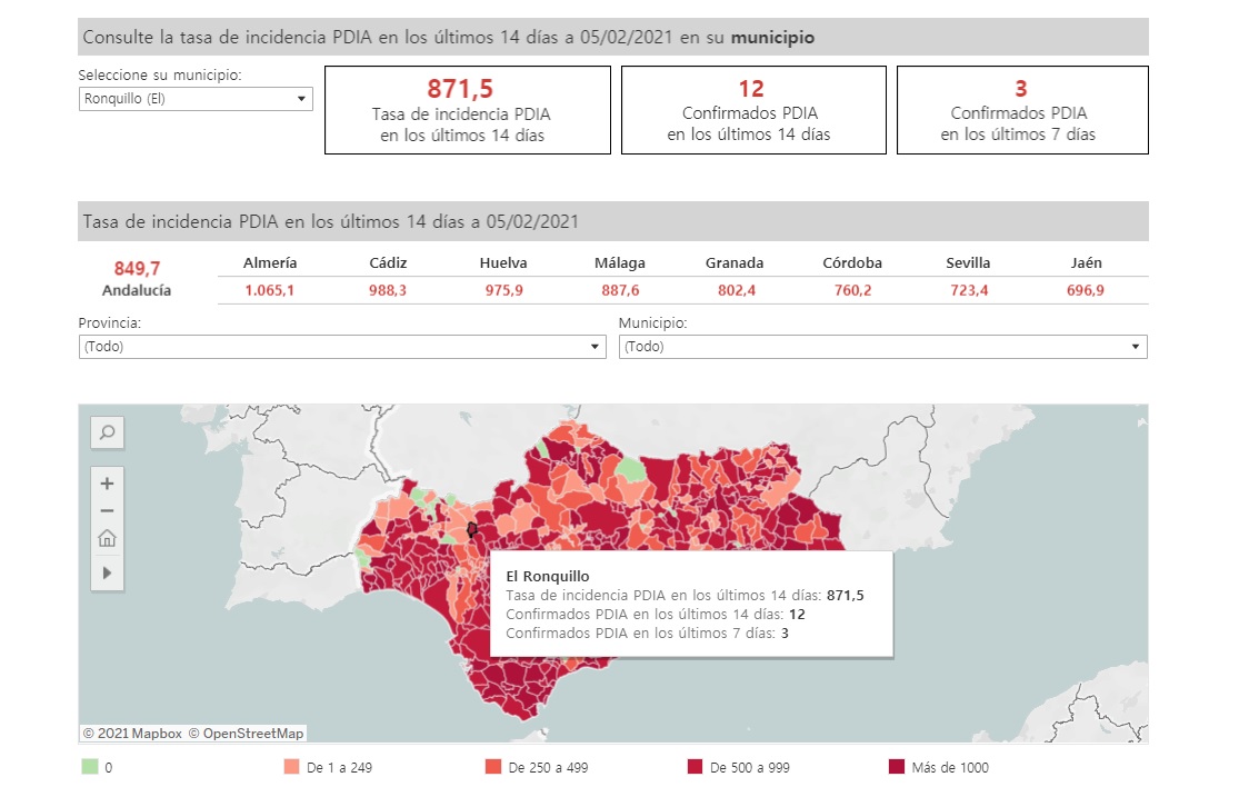 El portal IECA de la Junta de Andalucía publica a día de hoy un total de 39 positivos por coronavirus en El Ronquillo desde el inicio de la pandemia, a pesar de registrar 4 casos más que el pasado martes, la incidencia del Covid-19 en nuestro municipio en los últimos 14 días ha bajado.