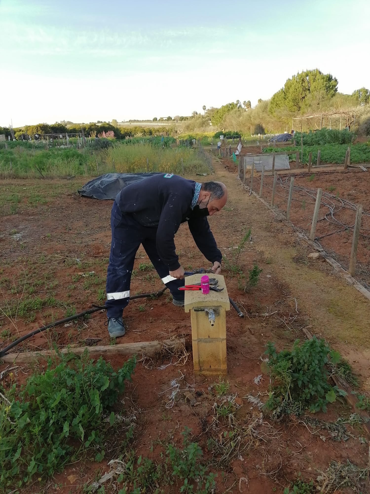 En la mañana de hoy los operarios municipales han estado realizando tareas de mantenimiento y arreglos de fontanería en los Huertos Sociales de nuestro pueblo.
