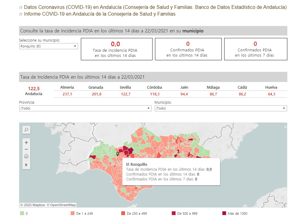 LA TASA DE INCIDENCIA PDIA EN EL RONQUILLO VUELVE A SER DE 0,0