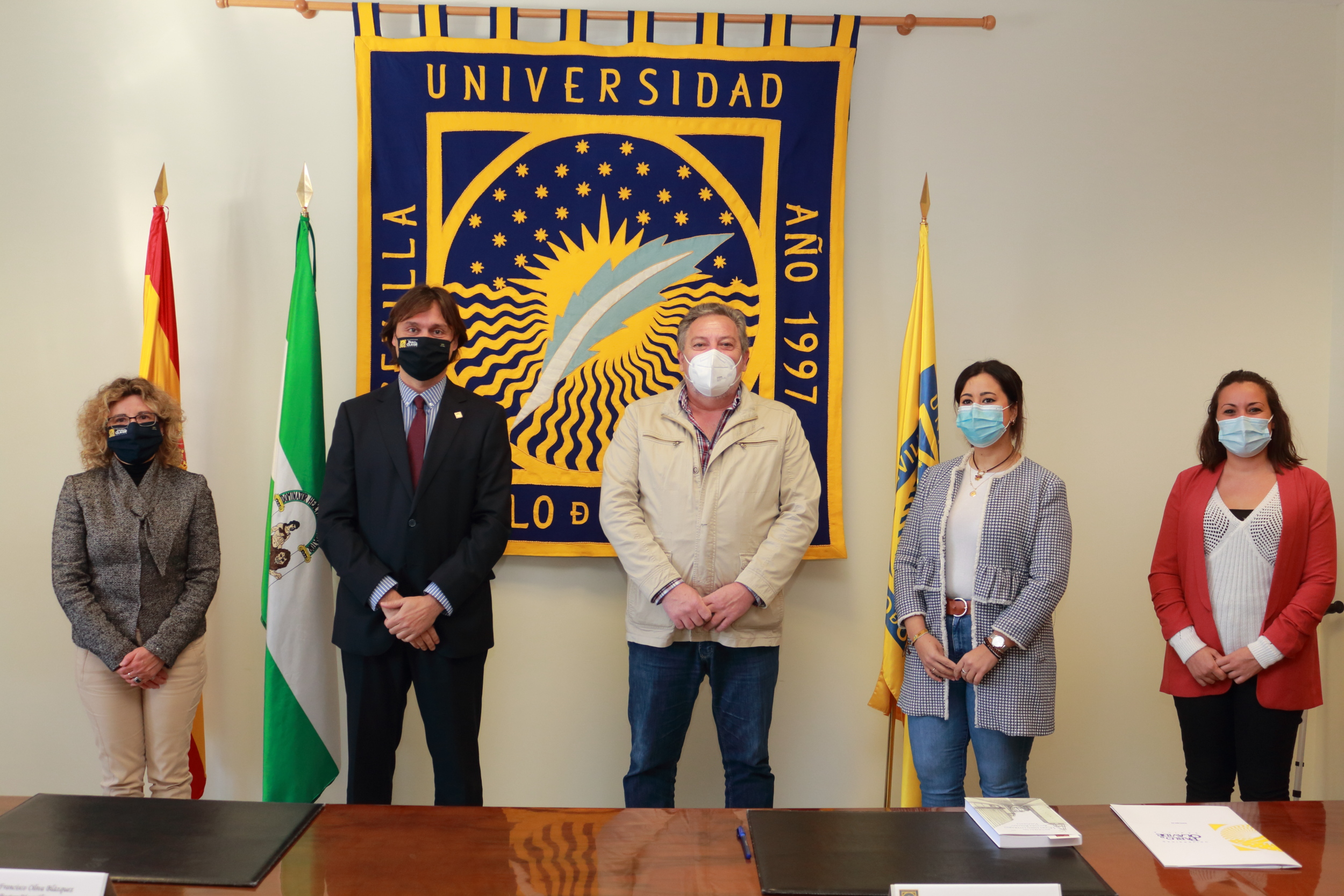 En el acto de firma también han estado presentes la directora académica del Aula Abierta de Mayores de esta universidad, Rocío Cruz Díaz, la coordinadora técnica Teresa Rebolledo Gámez, y la concejala- delegada de Educación, Infancia, Juventud, Tecnología de la Información, Comunicación y Transparencia del Ayuntamiento de La Puebla del Río, Ana Isabel Sánchez Gómez.
