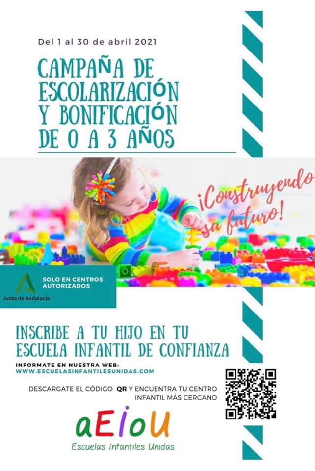 La Consejería de Educación y Deporte convoca el procedimiento de admisión para el primer ciclo de educación infantil en las escuelas infantiles de titularidad de la Junta de Andalucía y en las escuelas infantiles y centros de educación infantil adheridos al Programa de ayuda a las familias para los niños y niñas de 0 a 3 años para el curso 2021/22.