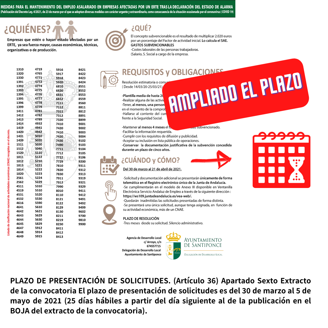 La publicación del Extracto de la Convocatoria en el BOJA extraordinario de 29 de marzo, abre el plazo para solicitar la Línea de subvención dirigida al mantenimiento de los puestos de trabajos asalariados en empresas, excluidas las del sector público, que estén o hayan estado afectadas por un expediente de regulación temporal de empleo y que se encuentren basados en causas relacionadas con la situación pandémica desde el estado de alarma.