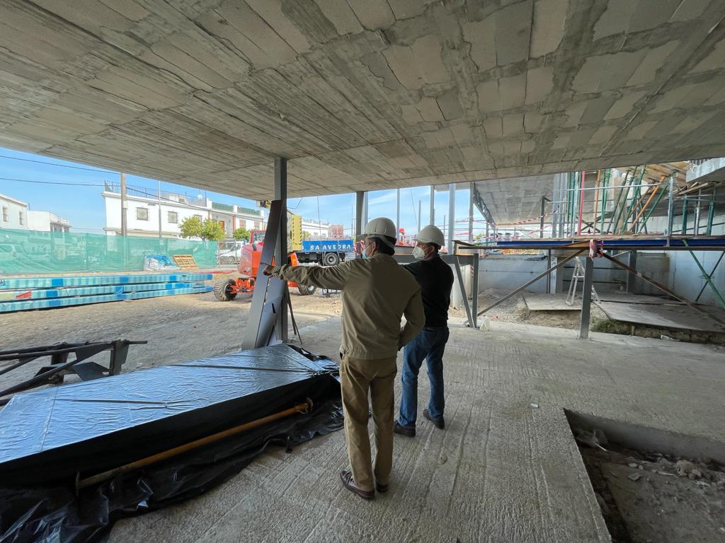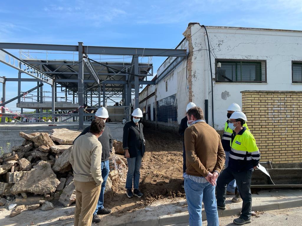 El alcalde de Valencina, Antonio Manuel Suárez, acompañado de personal técnico del Ayuntamiento y de los responsables de la dirección de obra y empresa constructora, ha visitado hoy las obras de la nueva Biblioteca Pública Municipal de Valencina, situada junto al IES Las Encinas, en la confluencia de las calles Alegría y Trabajadores.