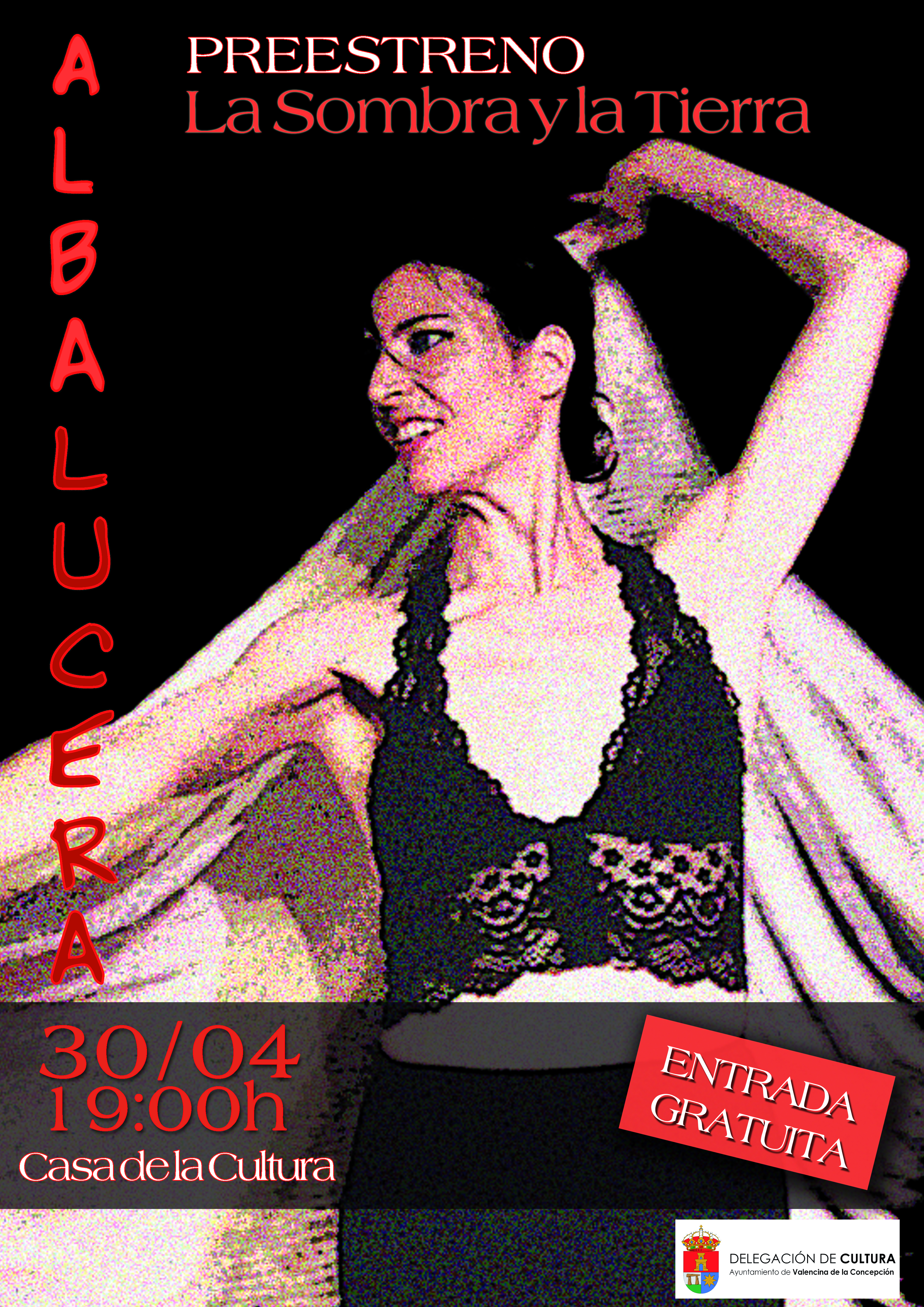 El Ayuntamiento de Valencina, a través de la delegación municipal de Cultura, informa sobre la próxima celebración en el municipio del preestreno del espectáculo de baile "La sombra y la tierra", a cargo de la Compañía Alba Lucera, el cual tendrá lugar el próximo 30 de abril, a las 19:00 horas, en la Casa de la Cultura. Las entradas son gratuitas y podrán recogerse en este mismo lugar desde el próximo lunes, día 19.