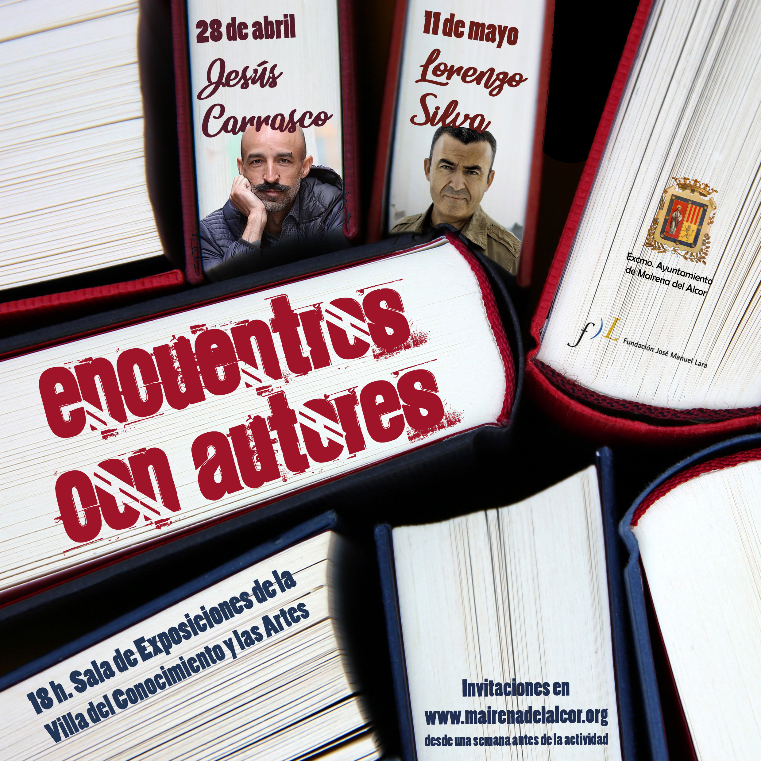 Participarán los autores Jesús Carrasco el miércoles 28 de abril y Lorenzo Silva el martes 11 de mayo, ambos días a las 18 horas en la sala de exposiciones de la Villa del Conocimiento y las Artes. El aforo es limitado y la entrada por invitación.