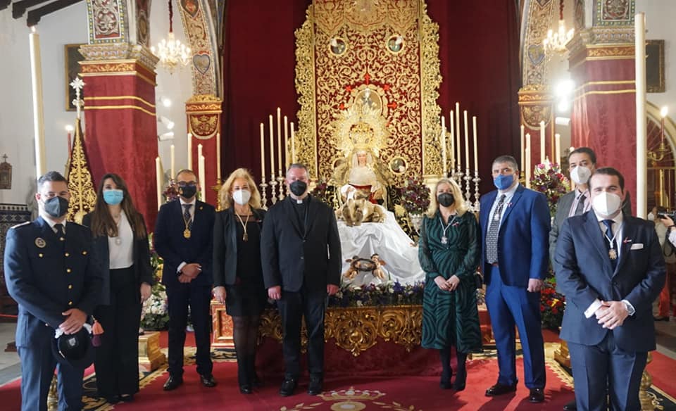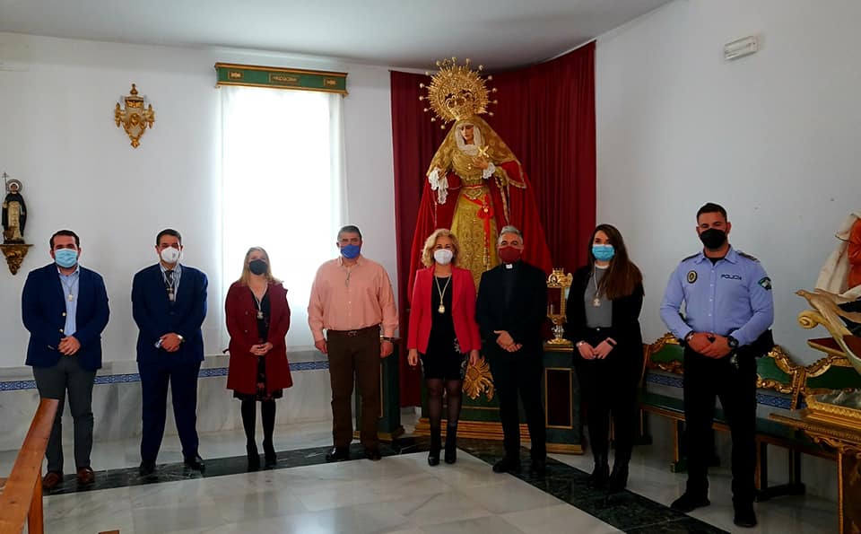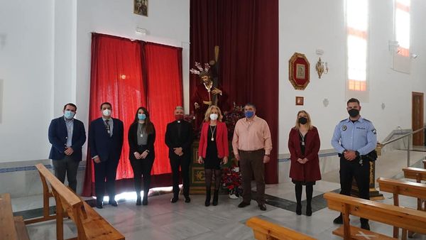 La alcaldesa, Carmen Herrera, acompañada de miembros de la Corporación Municipal y del jefe de la Policía Local, Miguel Ángel Hidalgo, ha visitado la Parroquia del Divino Salvador junto a su párroco Israel García.
