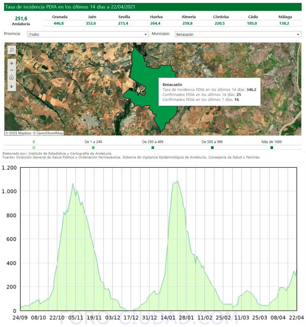 Puedes ver estos mismos datos, así como una gráfica de la curva de incidencia de la COVID-19 en Benacazón en el siguiente enlace https://www.foro-ciudad.com/.../benacazon/coronavirus.html