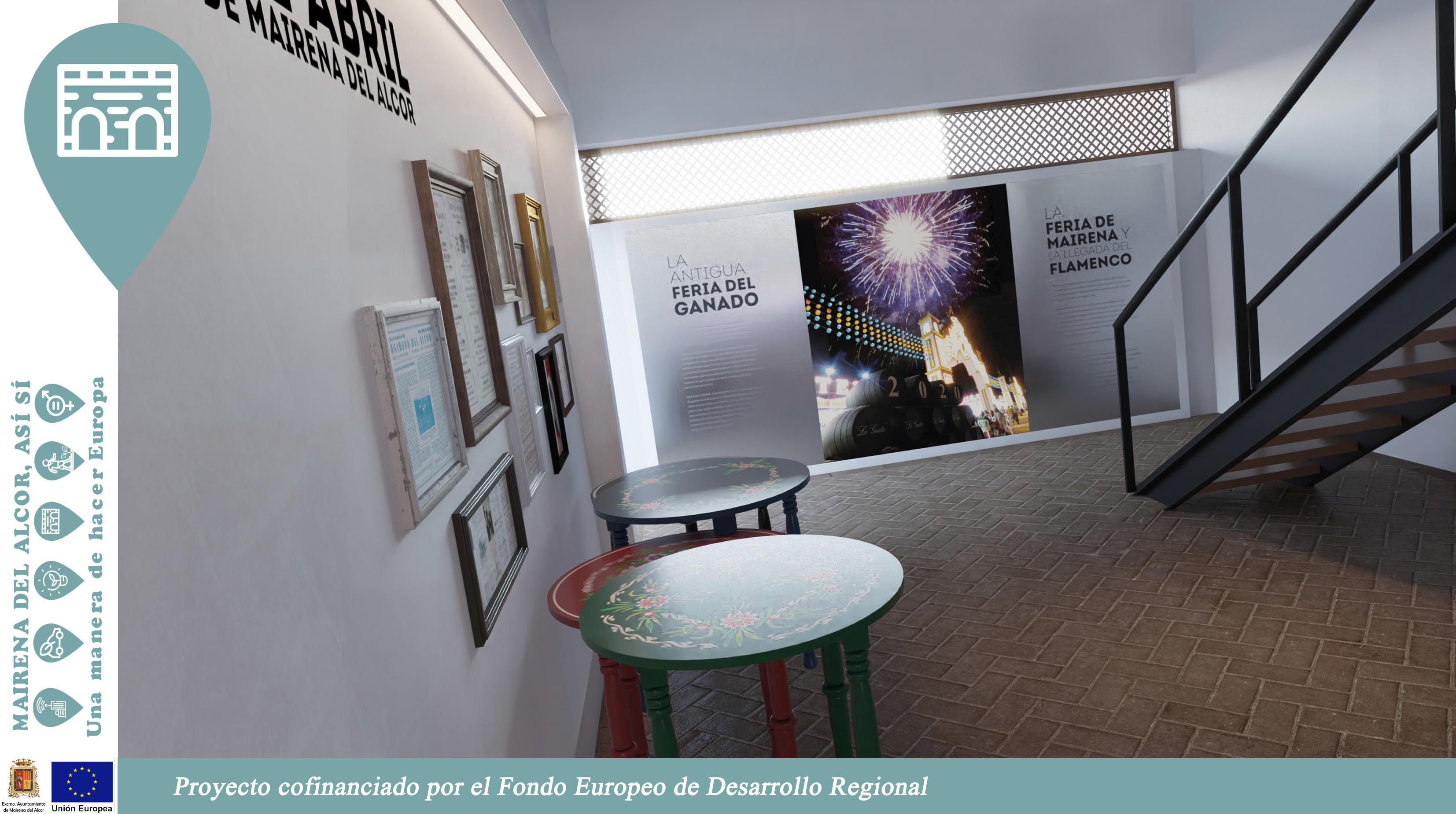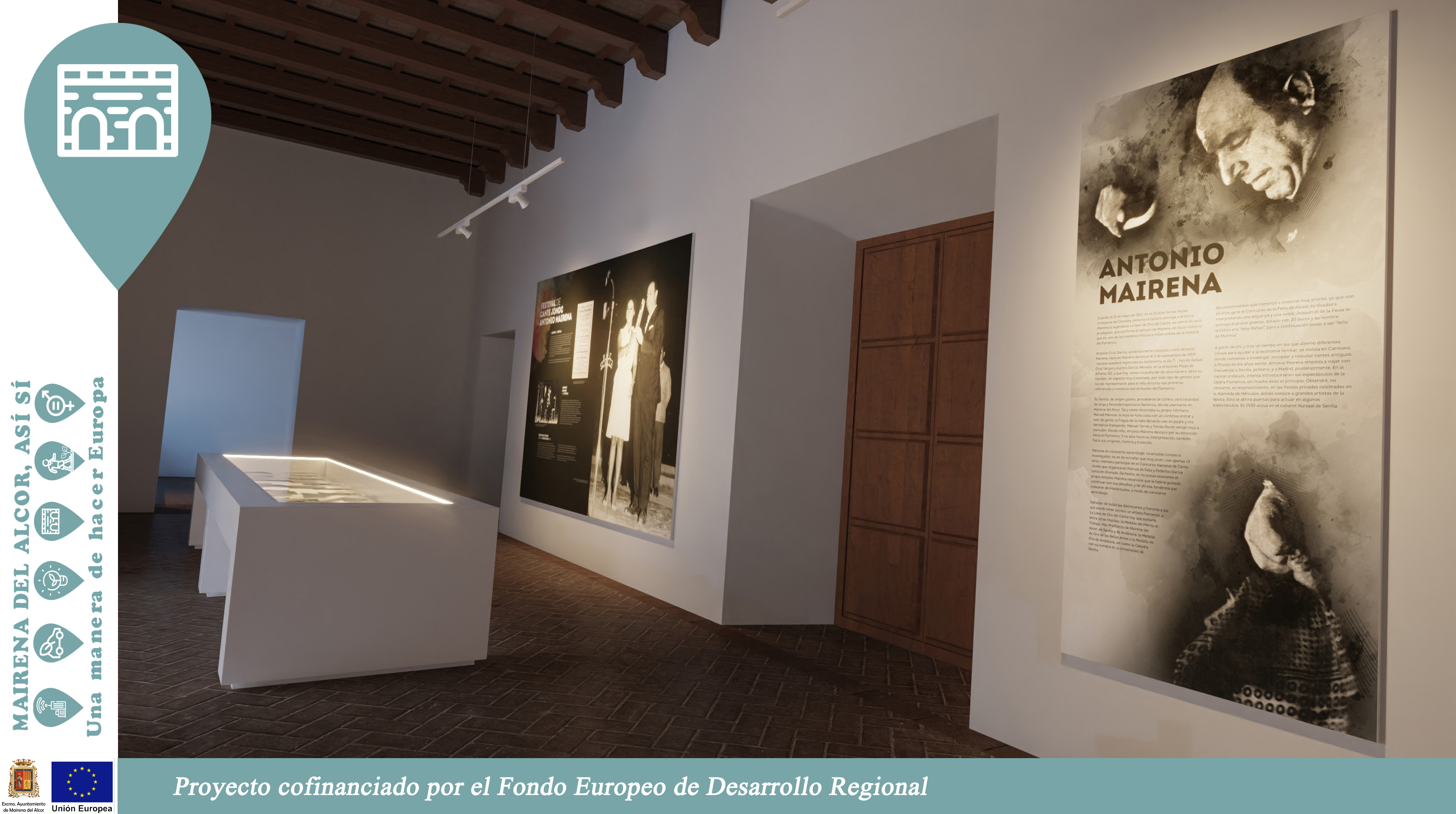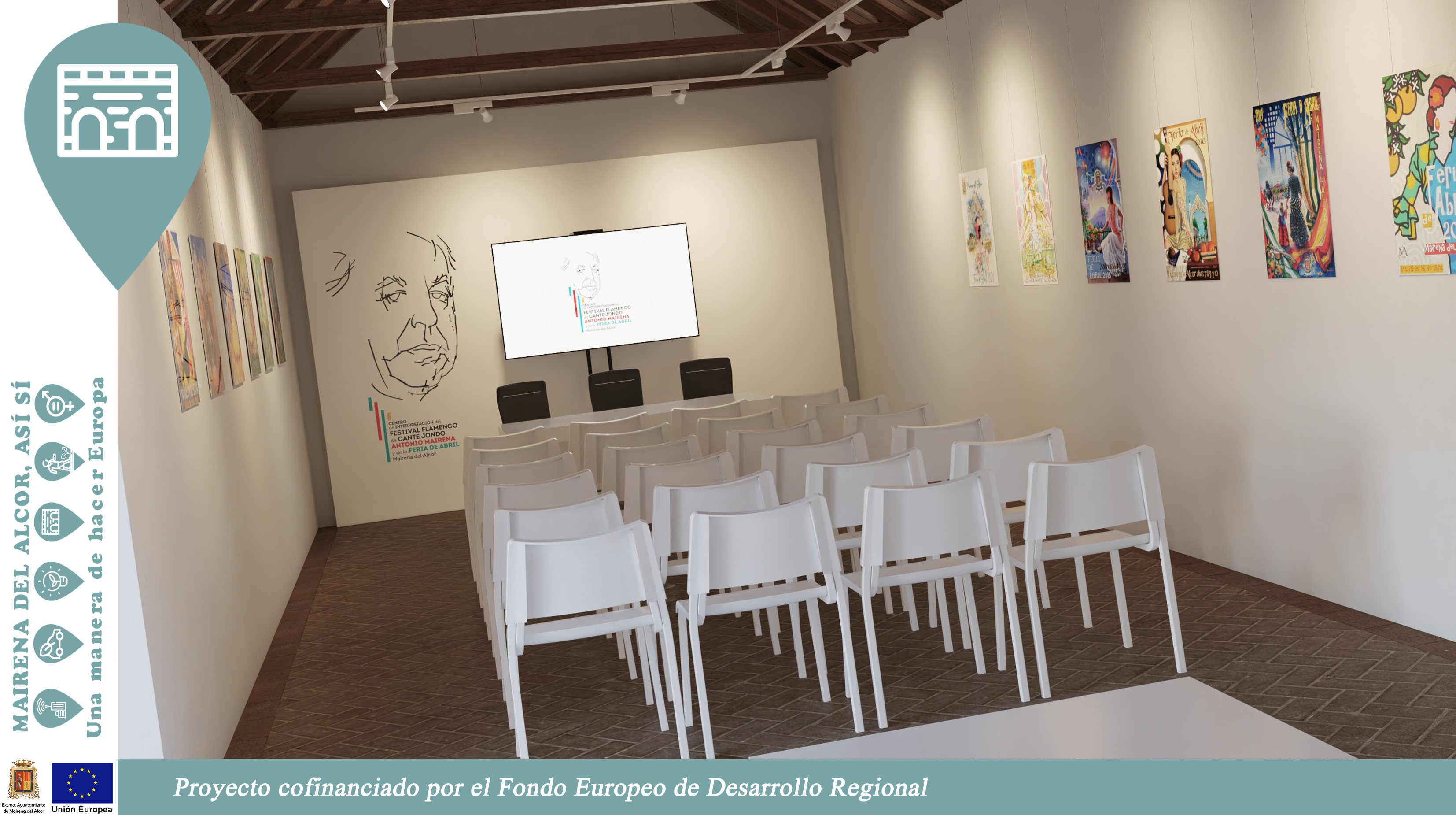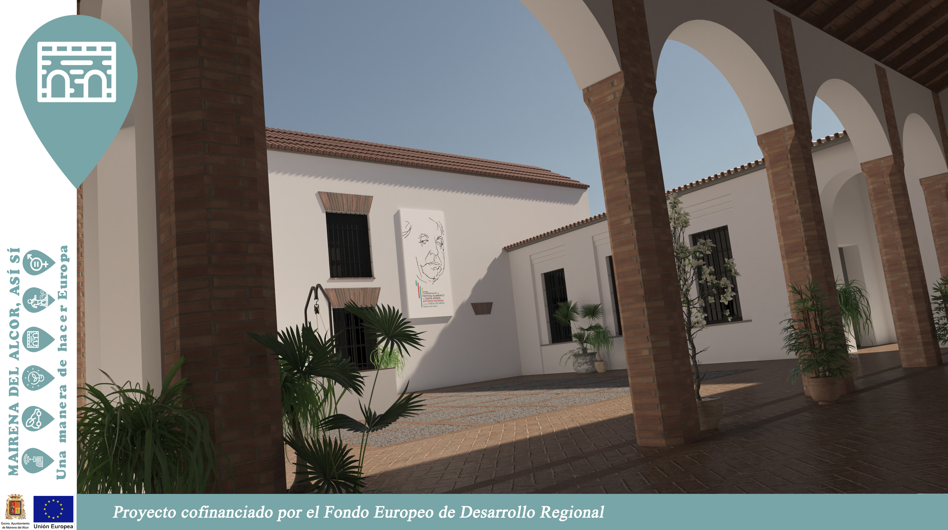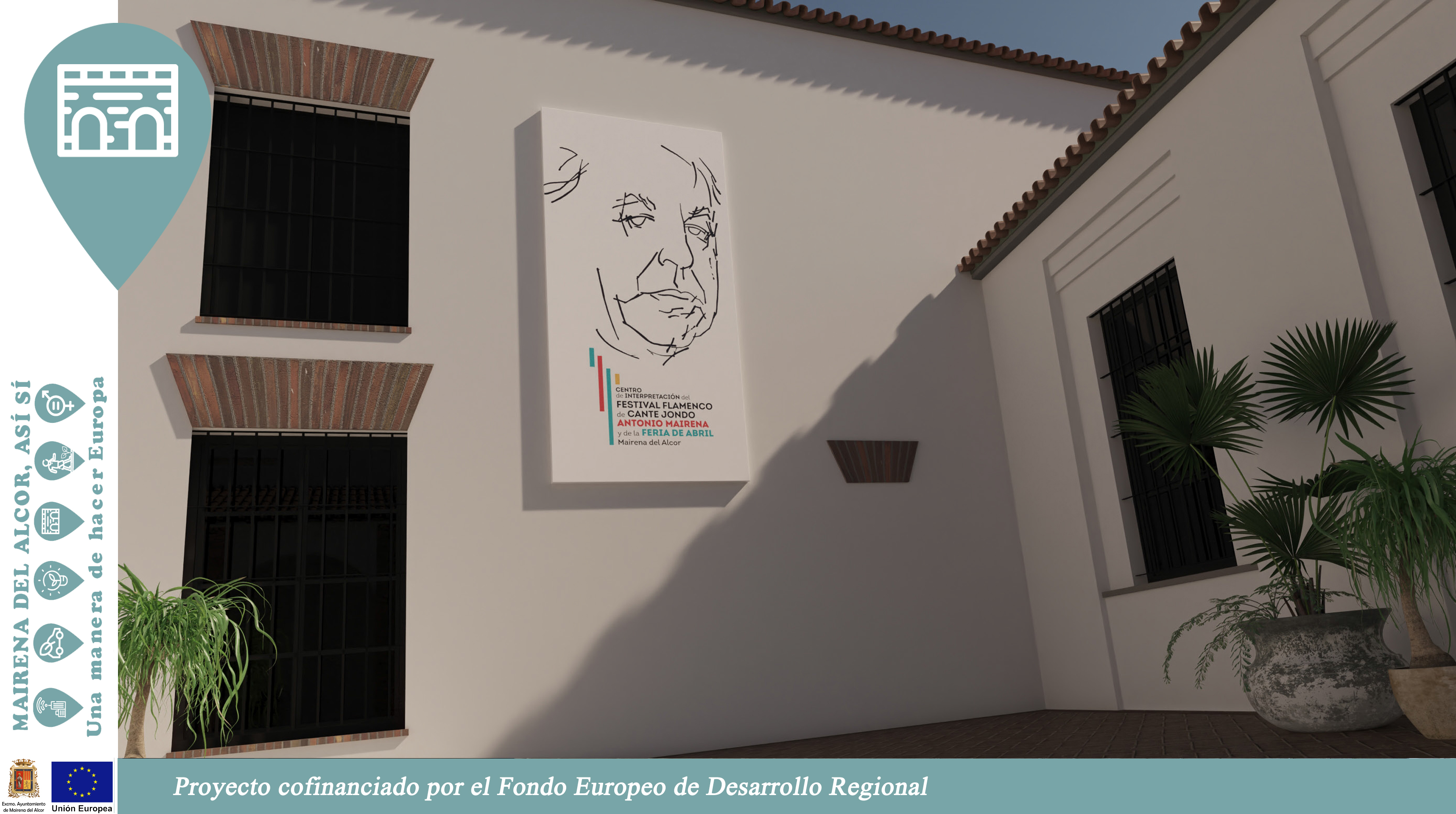 Este espacio dedicado al Festival y el Concurso de Cante Jondo Antonio Mairena y la Feria forma parte de la línea 4 de la Estrategia de Desarrollo Urbano Sostenible (EDUSI) de Mairena del Alcor financiada con fondos europeos (FEDER).