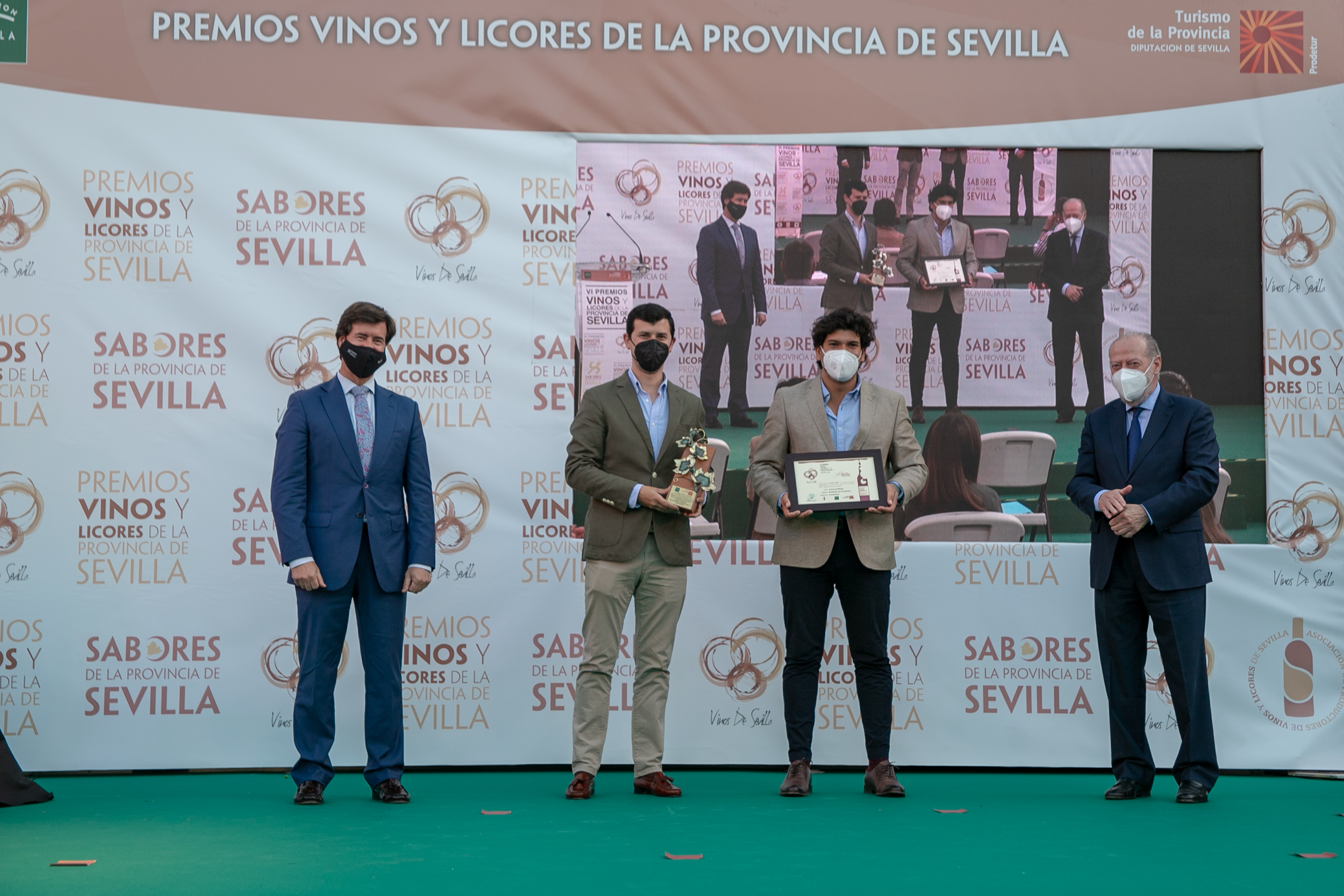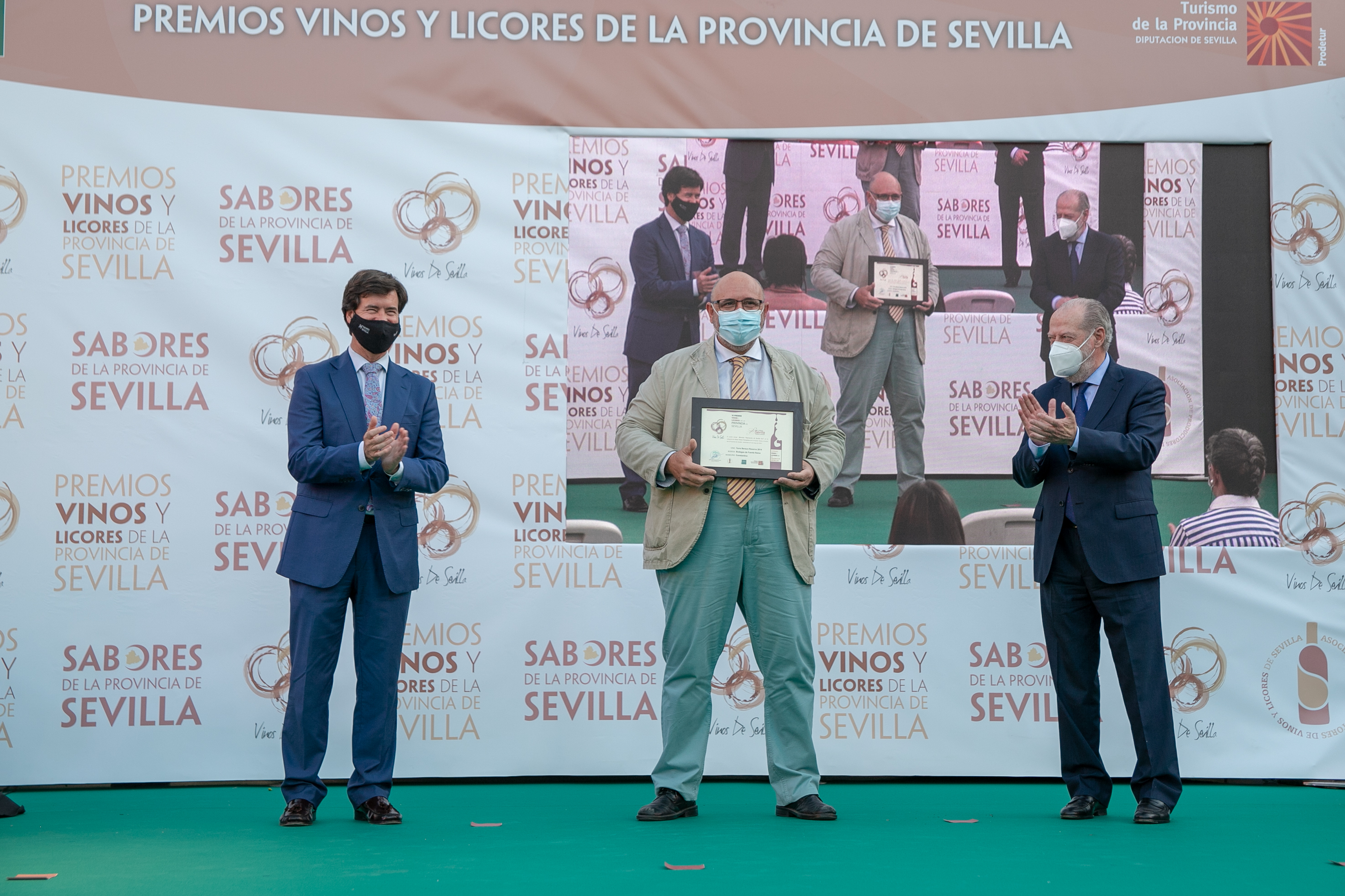 El alcalde de Constantina, Rubén Rivera, asistía ayer junto al presidente de la Diputación de Sevilla, Fernando Rodríguez Villalobos, a la entrega de la sexta edición del Premio a los mejores vinos y licores de la provincia de Sevilla organizado por este organismo provincial, con el consiguiente orgullo de hacer entrega a tres empresas locales de premios que reconocen la calidad de los productos de Constantina.