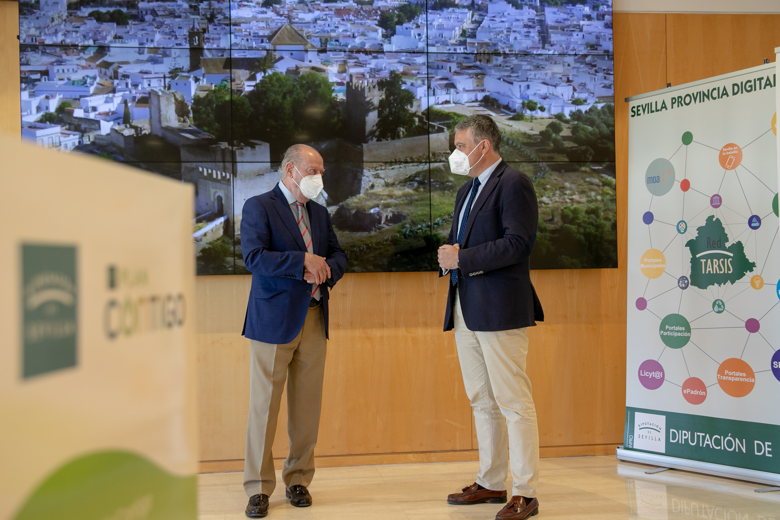 El alcalde de Mairena del Alcor, Juanma López, ha mantenido una reunión de trabajo con el presidente de la Diputación de Sevilla, Fernando Rodríguez Villalobos, en la sede de la institución provincial, para informarle cuáles son los proyectos más relevantes que el Ayuntamiento mairenero va a desarrollar en la localidad, a través de las inversiones provinciales del Plan Contigo.