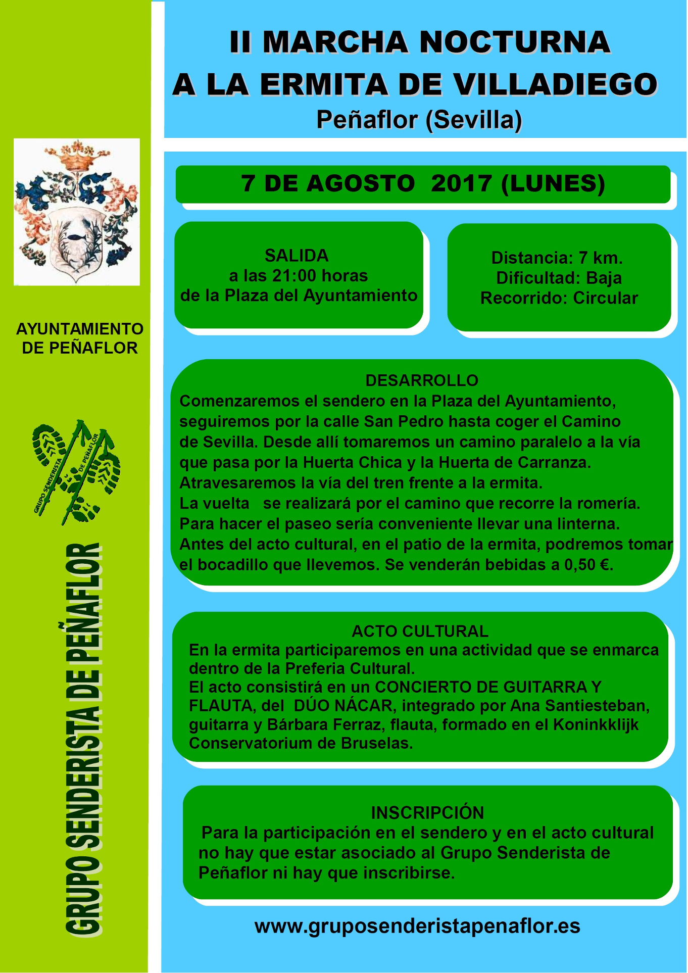 Imagen Ubicación Categoría noticia Cultura Mostrar en el carrusel de la sección No Fecha Lun, 07/08/2017 - 21:00 Más información http://www.penaflor.es/es/actualidad/noticias/II-Marcha-Nocturna-a-la-Ermita-de…