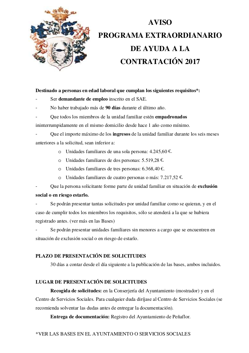 Bases del Programa Extraordinario de Ayuda a la Contratación