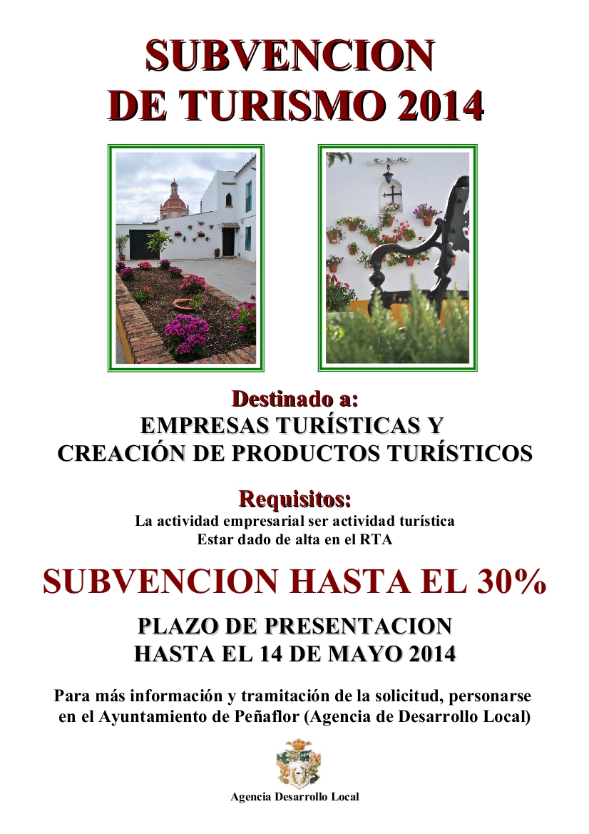 Imagen Ubicación Categoría noticia Desarrollo Económico Mostrar en el carrusel de la sección No Fecha Vie, 18/04/2014 - 19:39 Más información http://www.penaflor.es/es/actualidad/noticias/SUBVENCION-PARA-EL-SECTOR-DEL-TUR…