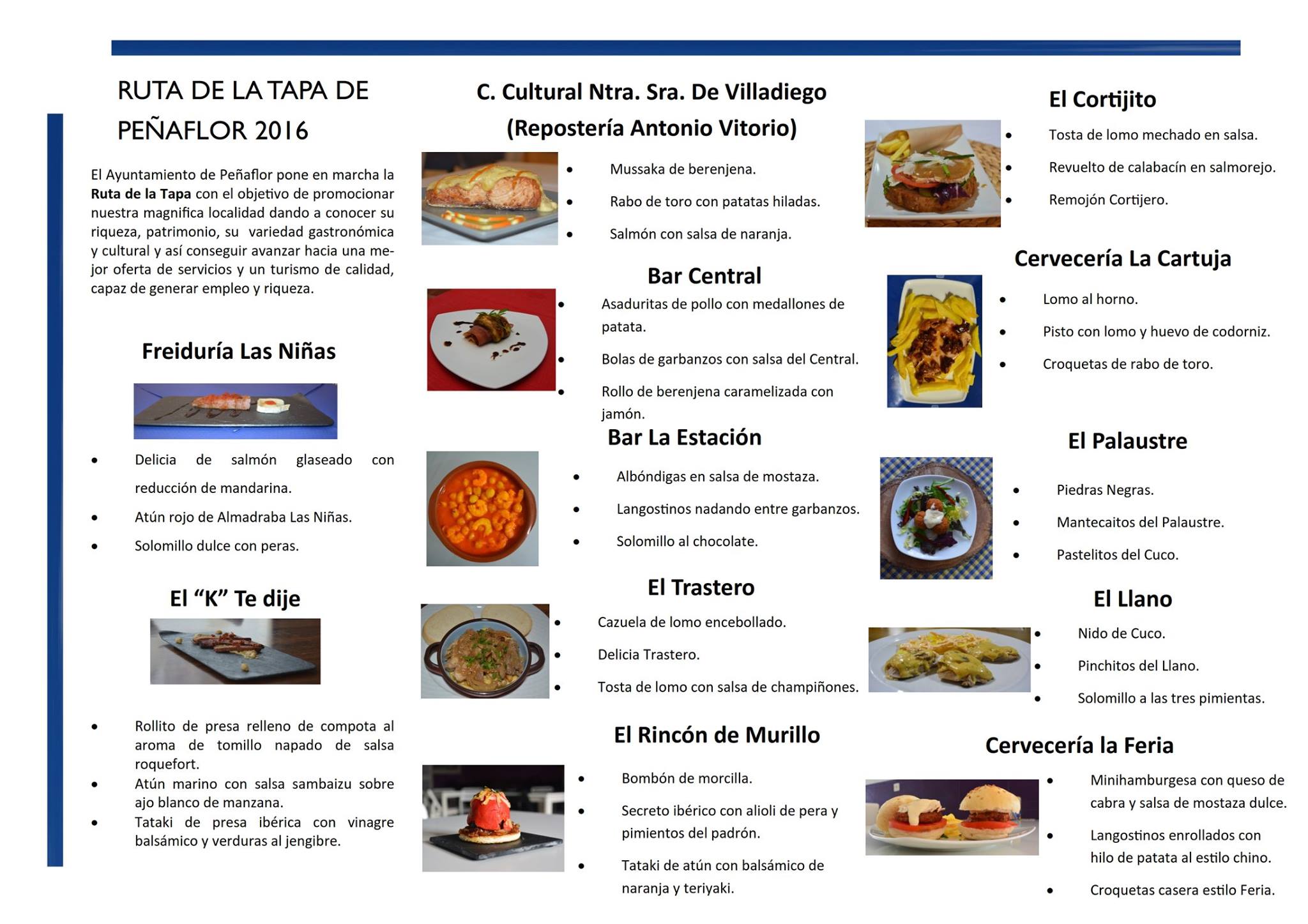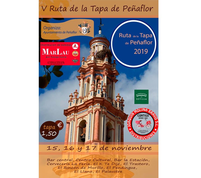 Imagen Imágenes Ubicación Categoría noticia Turismo Mostrar en el carrusel de la sección No Fecha Lun, 11/11/2019 - 10:33 Más información http://www.penaflor.es/es/actualidad/noticias/RUTA-DE-LA-TAPA-DE-PENAFLOR-2019/