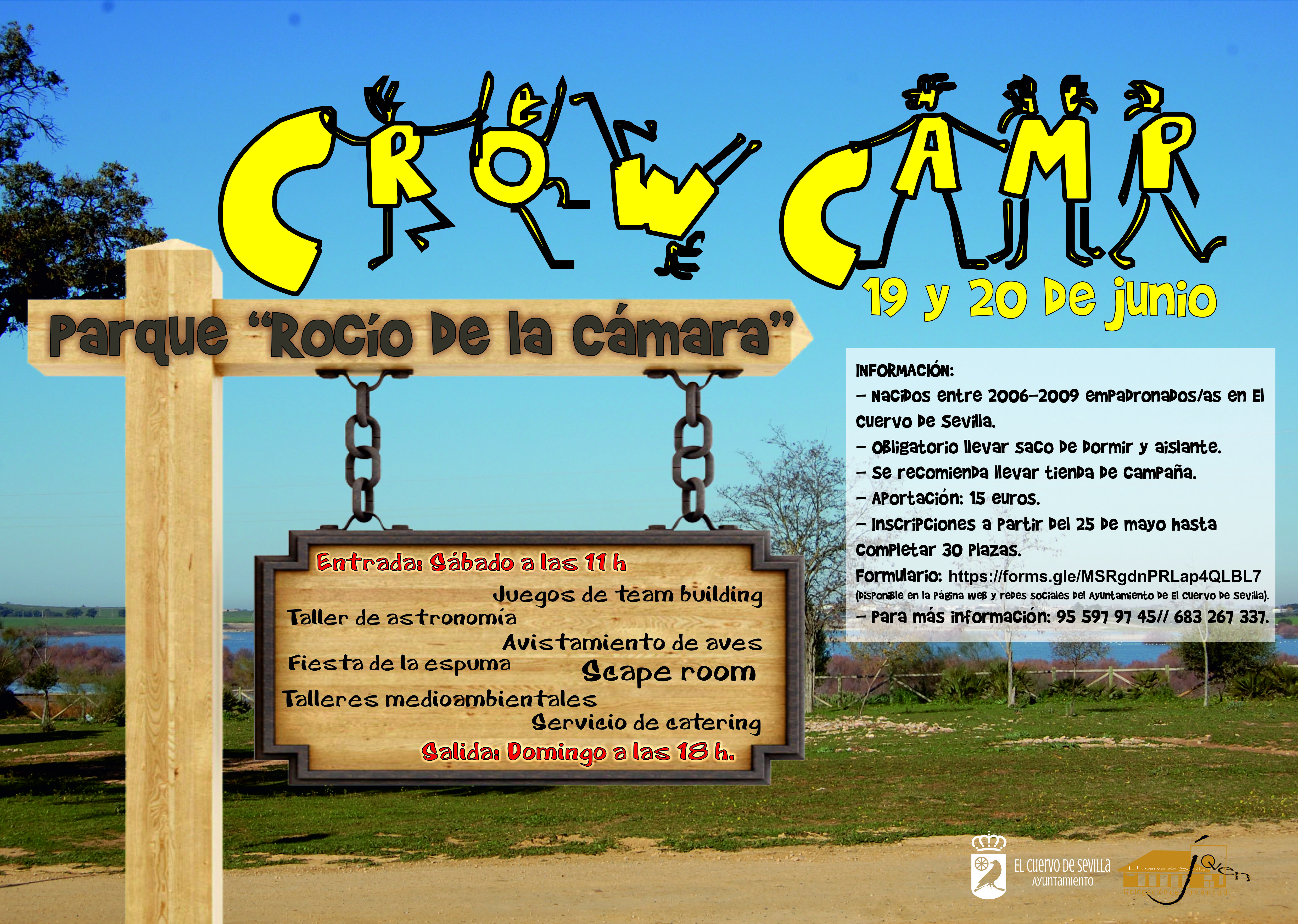 El Crow Camp 2021 se desarrollará el fin de semana del 19 y 20 de junio en el parque Rocío de la Cámara. La actividad está dirigida a menores empadronados en El Cuervo que hayan nacido entre el 2006 y 2009.