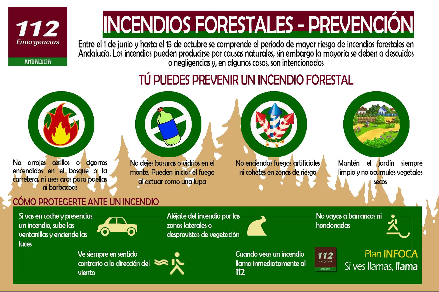 Se informa a todos/as nuestros/as vecinos/as, que en el día de hoy, 1 de junio 2021, se da por iniciada la época de alto riesgo de incendios forestales en Andalucía.