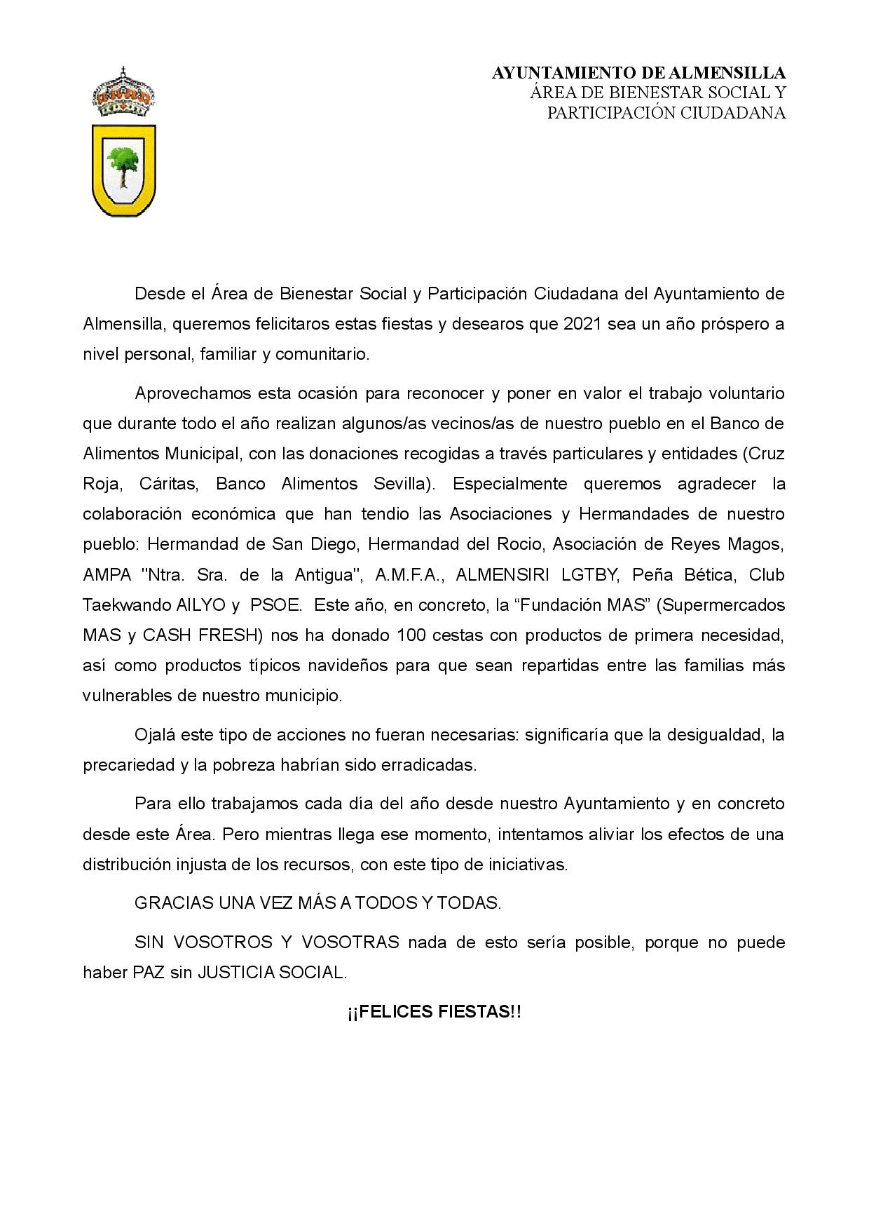Imagen Ubicación Categoría noticia Bienestar social Mostrar en el carrusel de la sección No Fecha Mar, 22/12/2020 - 12:12 Más información http://www.almensilla.es/es/actualidad/noticias/Carta-de-agradecimiento-y-felic…