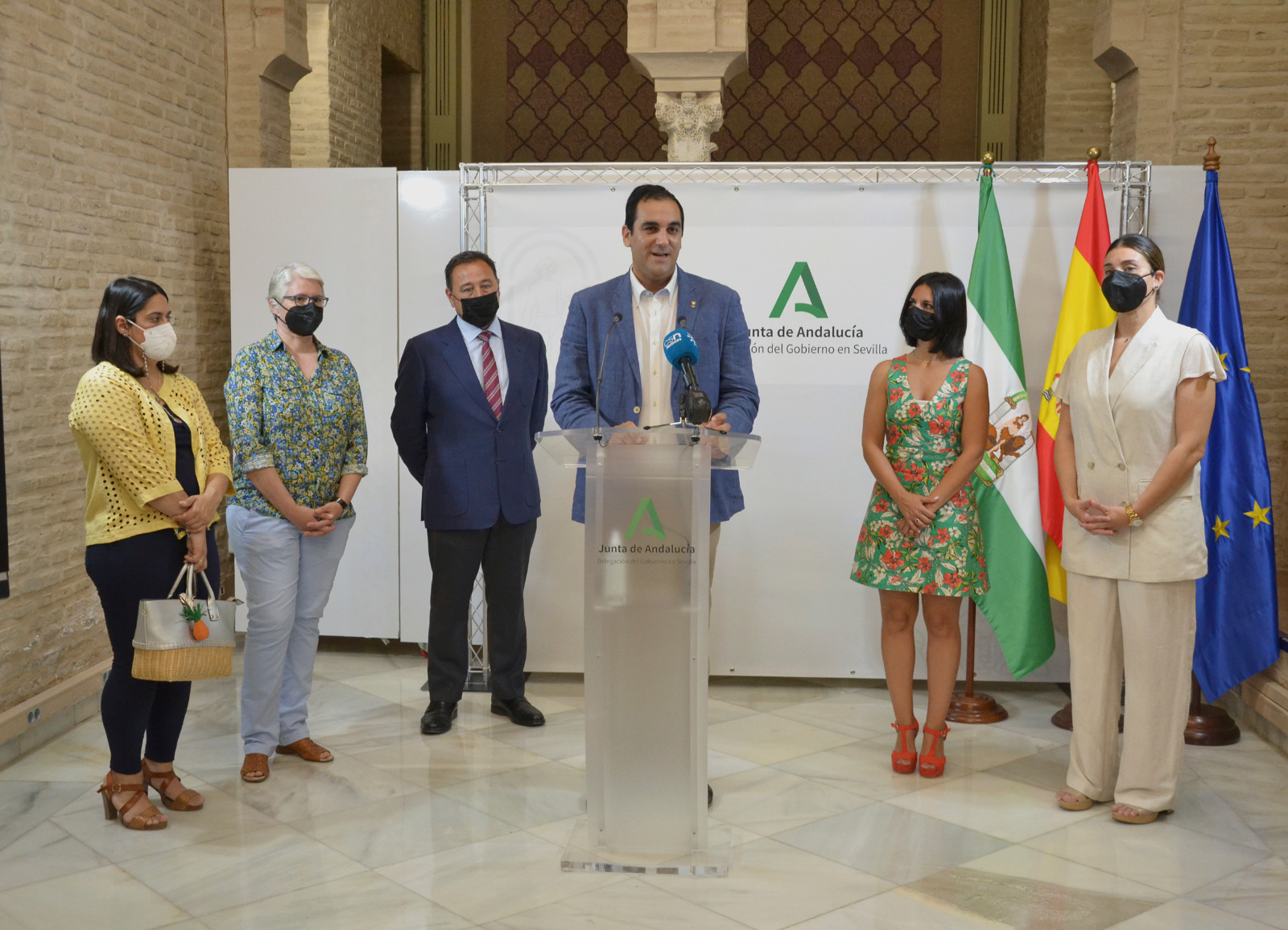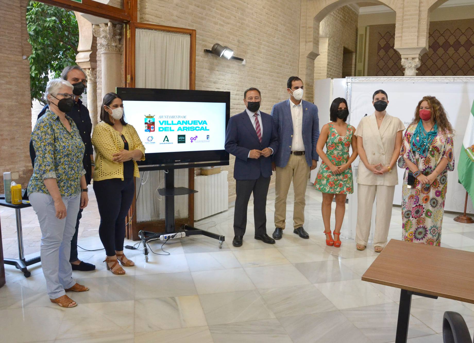 La Delegación de Gobierno de la Junta de Andalucía en Sevilla ha presentado una campaña del Ayuntamiento de Villanueva del Ariscal 'La violencia es cosa de todos' que tiene como objetivo concienciar sobre la violencia de género entre los más jóvenes mediante una producción audiovisual. El delegado del Gobierno de la Junta en Sevilla, Ricardo Sánchez , y el alcalde de Villanueva del Ariscal, Martín Torres Castro, han estado acompañados en la presentación por la delegada territorial de Igualdad y Políticas Sociales en Sevilla, Ana González Pinto, la asesora provincial del Instituto Andaluz de la Mujer (IAM), Marta Gómez, la concejal delegada de Igualdad del Ayuntamiento de Villanueva del Ariscal, María del Mar García, y la técnica de Igualdad del consistorio, Ángeles Moreno.