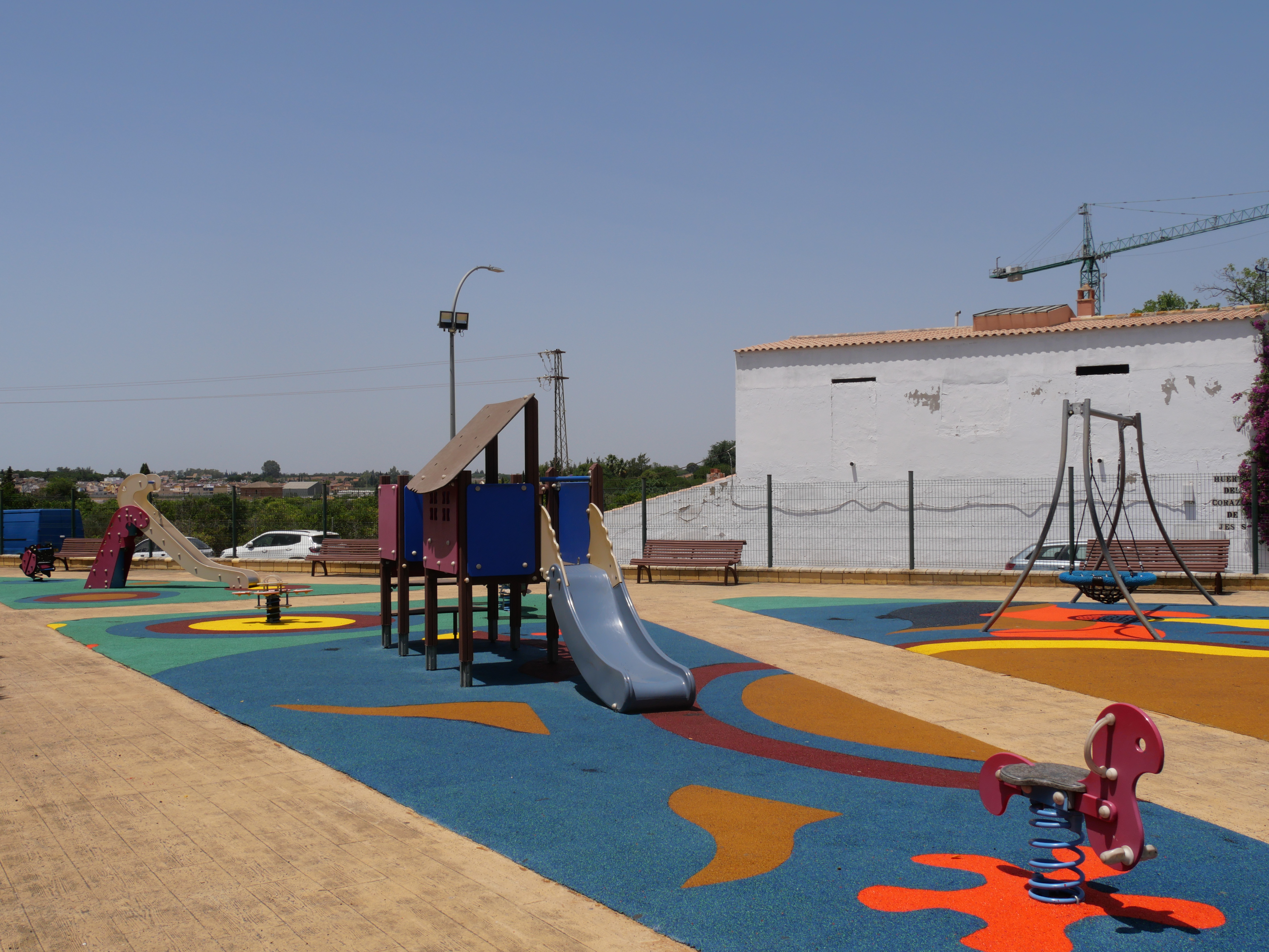 El delegado de Parques y Jardines, José Romero, explica las reparaciones realizadas en el parque Plaza del Sol para el uso y disfrute de estas instalaciones. Asimismo, anuncia que se seguirán arreglando todos los parques de Mairena del Alcor.