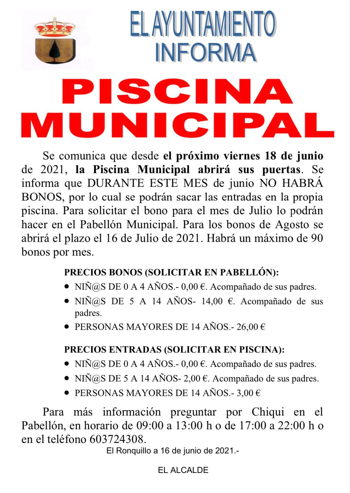 Imagen Imágenes Ubicación Categoría noticia Deporte Mostrar en el carrusel de la sección No Fecha Mié, 16/06/2021 - 14:53 Más información http://www.elronquillo.es/es/servicios-00001/actualidad/noticias/PISCINA-MUNICI…
