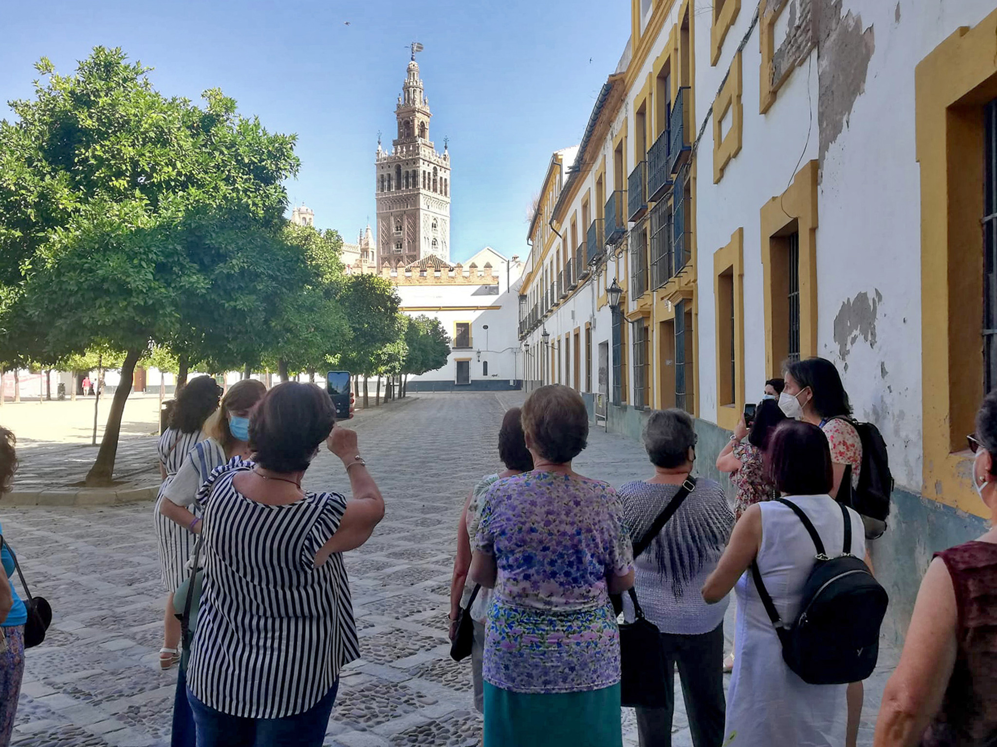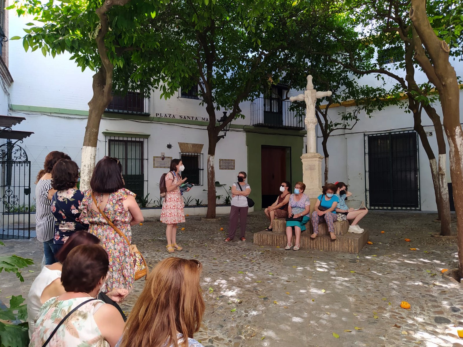 De este modo, la mañana del pasado viernes 11 de junio, mujeres benacazoneras pudieron conocer más sobre espacios históricos y culturales de Sevilla y su relación con grandes mujeres cuya aportación social, intelectual o artística ha dejado huella en la historia. A cargo de guías oficiales de turismo, las participantes recorrieron diferentes lugares como los alrededores de la Catedral de Sevilla o espacios públicos situados en el barrio Santa Cruz o el Arenal, entre otros. La Concejala de Mujer e Igualdad, Ana Caro, y una de las técnicas del PIM (Punto de Igualdad Municipal) acompañaron al grupo durante la visita.